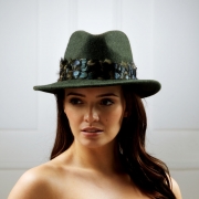The Aquarius fedora hat is a timeless felt fedora hat trimmed with delicate feathers. The Aquarius is perfect for country pursuits such as racing or shooting and could be worn for a winter wedding. The hat and feathers are available in different colours simply select your colour choice from the drop down menu.