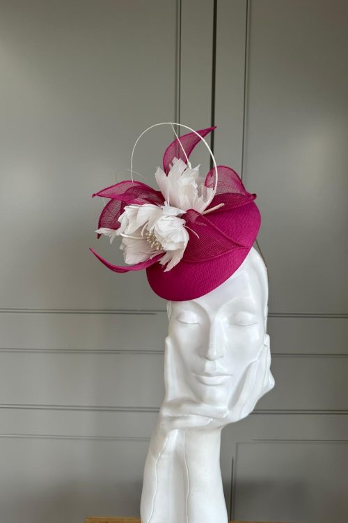Ready to Wear Fuchsia & Ivory Halifax Pillbox Hat