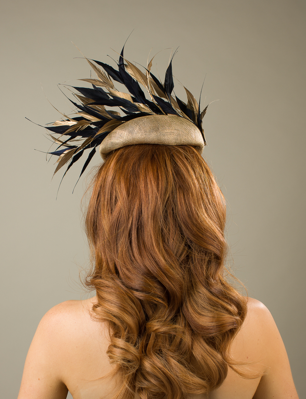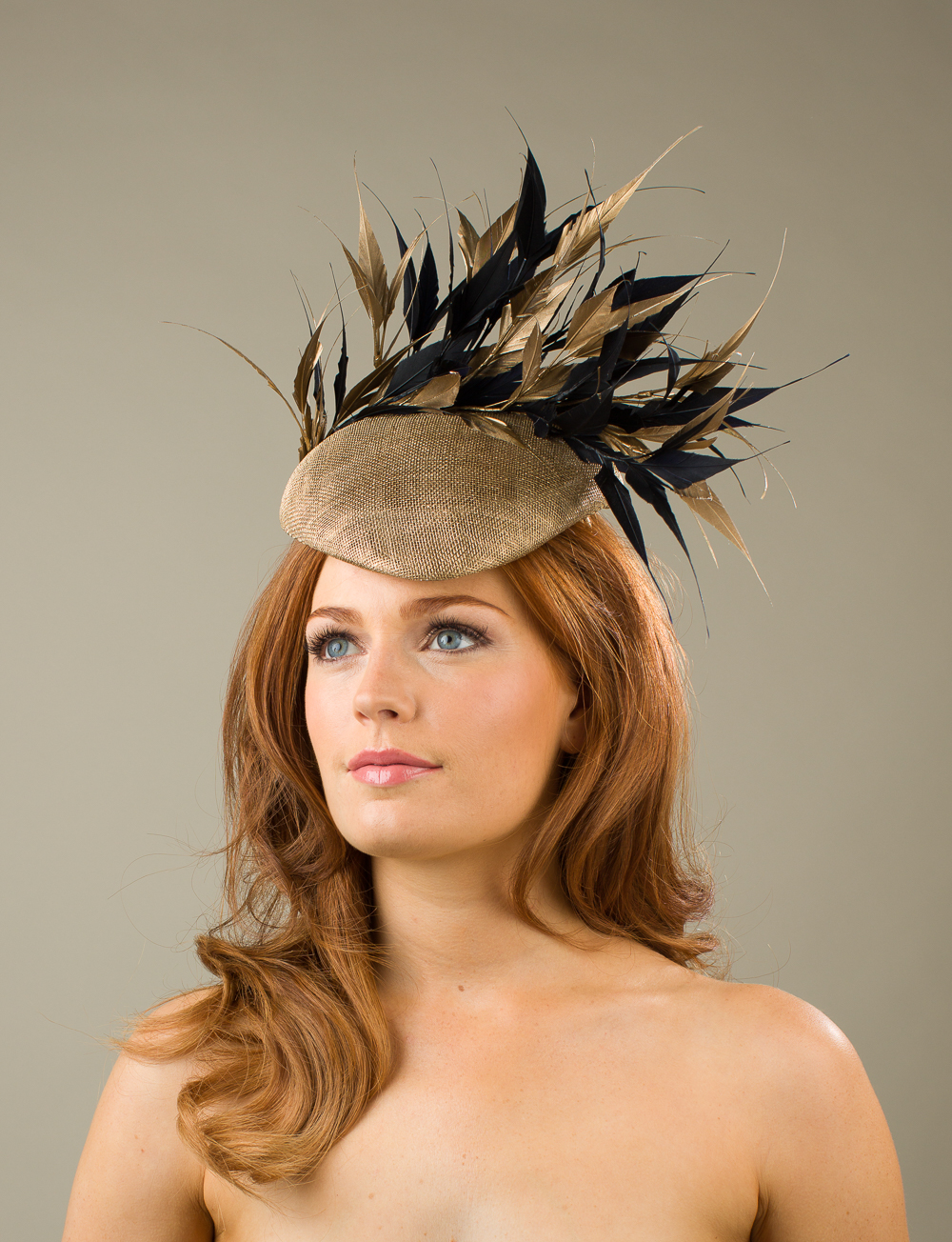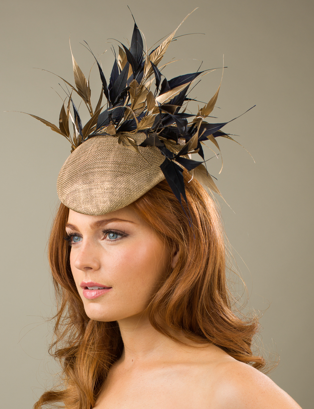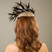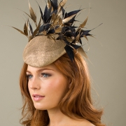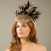 The Alnwick Pillbox hat is the perfect wedding guest or race day hat. It comprises a sinamay pillbox style base trimmed to the back with spiked goose feathers, which gives the hat some soft structure and height.