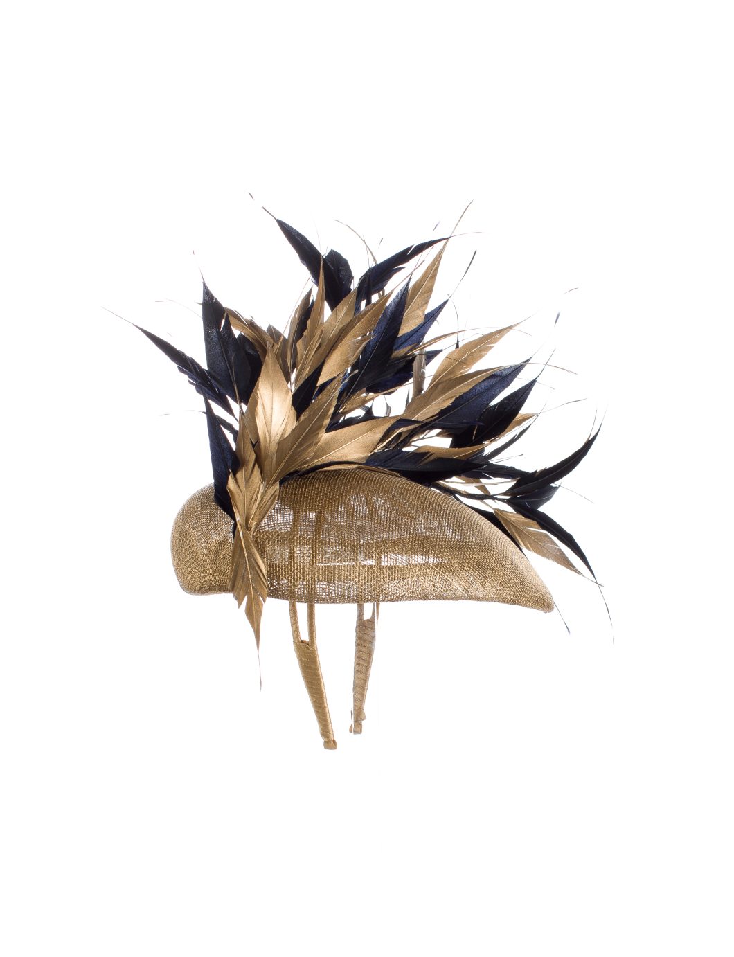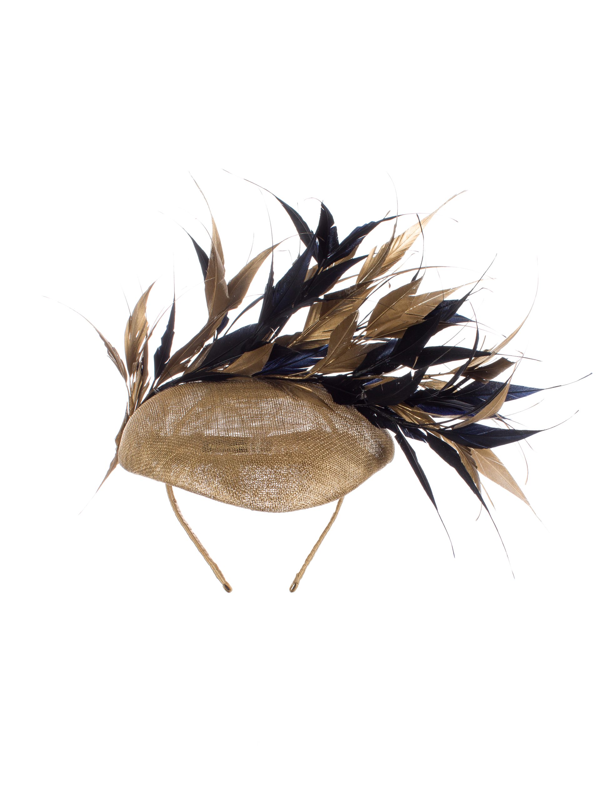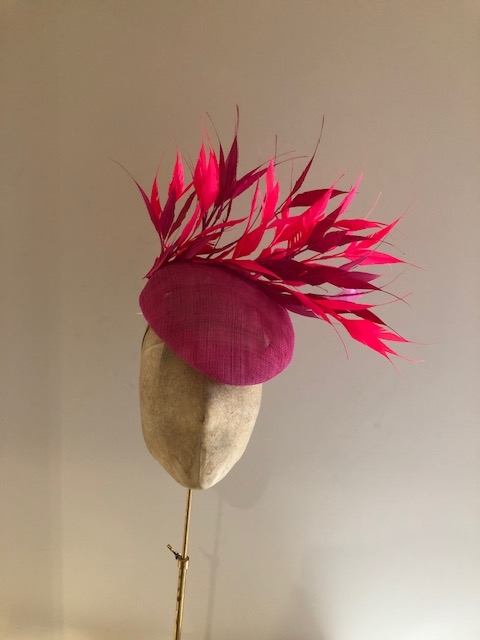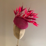 The Alnwick Pillbox hat is the perfect wedding guest or race day hat. It comprises a sinamay pillbox style base trimmed to the back with spiked goose feathers, which gives the hat some soft structure and height.