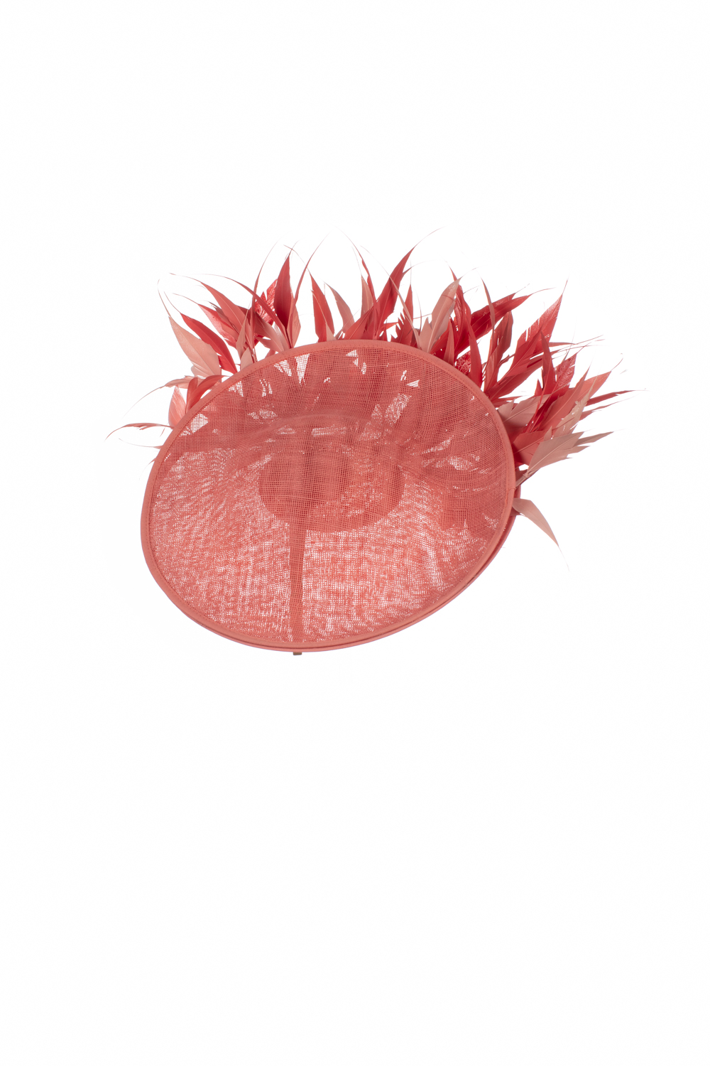 The Antibes Dish hat is a really chic and neat dish hat.  The hat comprises a small double dish base and is trimmed with spiked feathers in up to 3 different colours to half the circumference of the hat. This is a great wedding guest hat or for a day at the races.