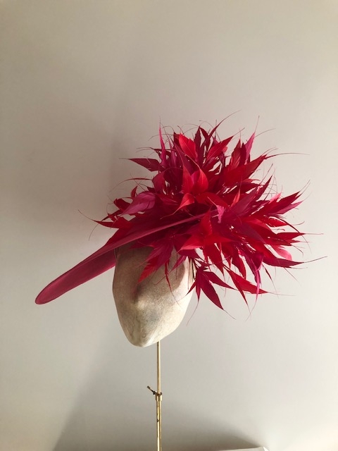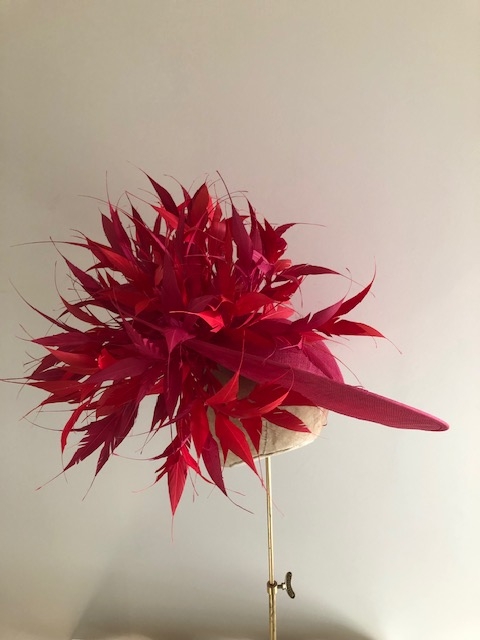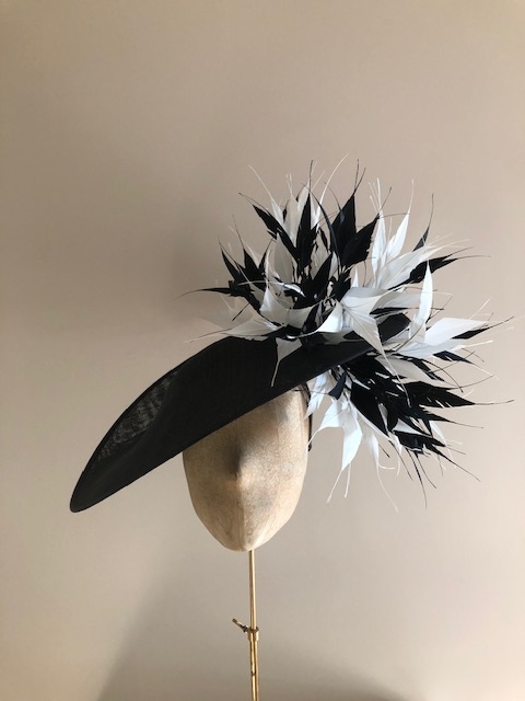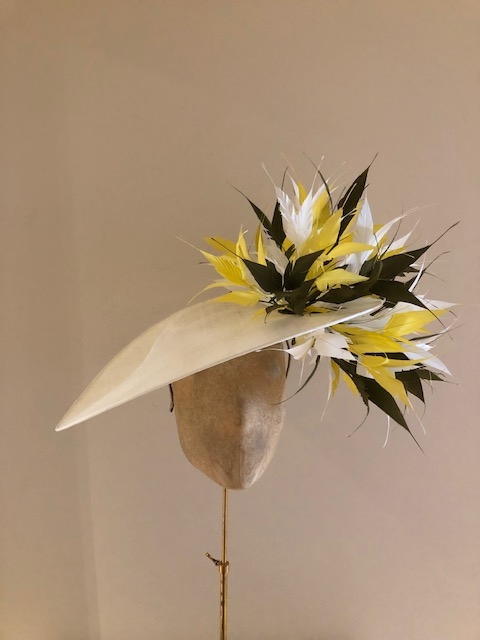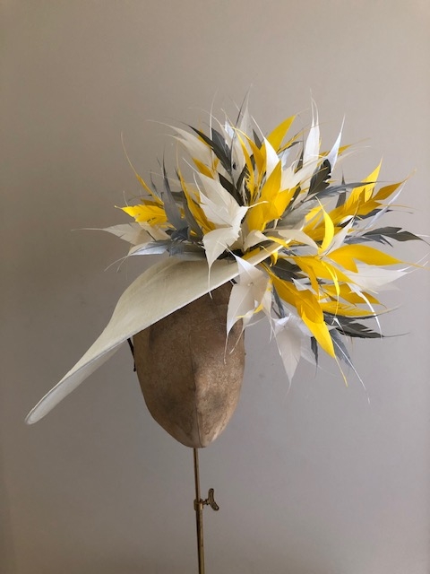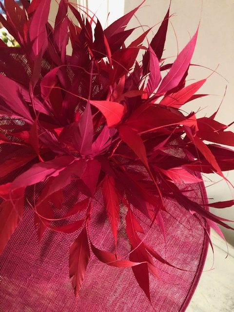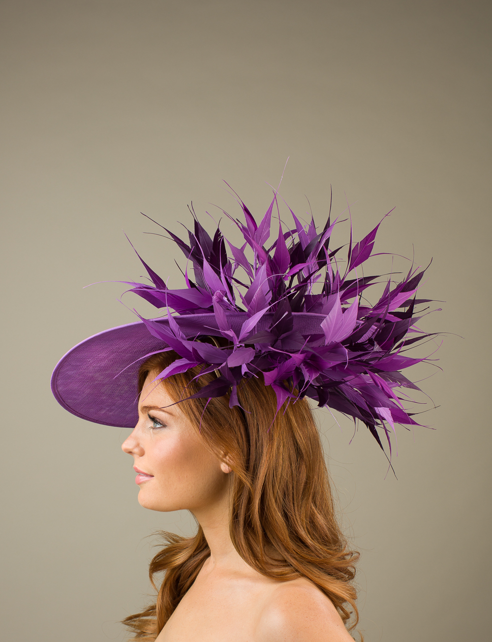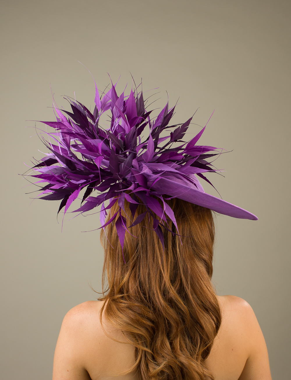 We LOVE the lilac shades of the Bamburgh shown on the the model, however you can have any of our hats in your choice of colours. You can choose up to three different colours for the feather trims. We have hundreds of colours to choose from which means that the hat can be colour matched perfectly to your chosen outfit.  We are happy to send out colour swatches so you can be sure that the colours you choose match your outfit. Please contact us on info@hostiehats.co.uk to order your colour swatches.