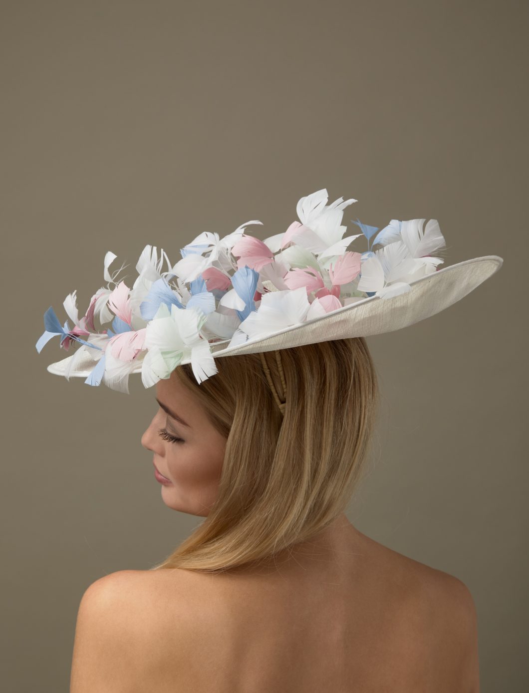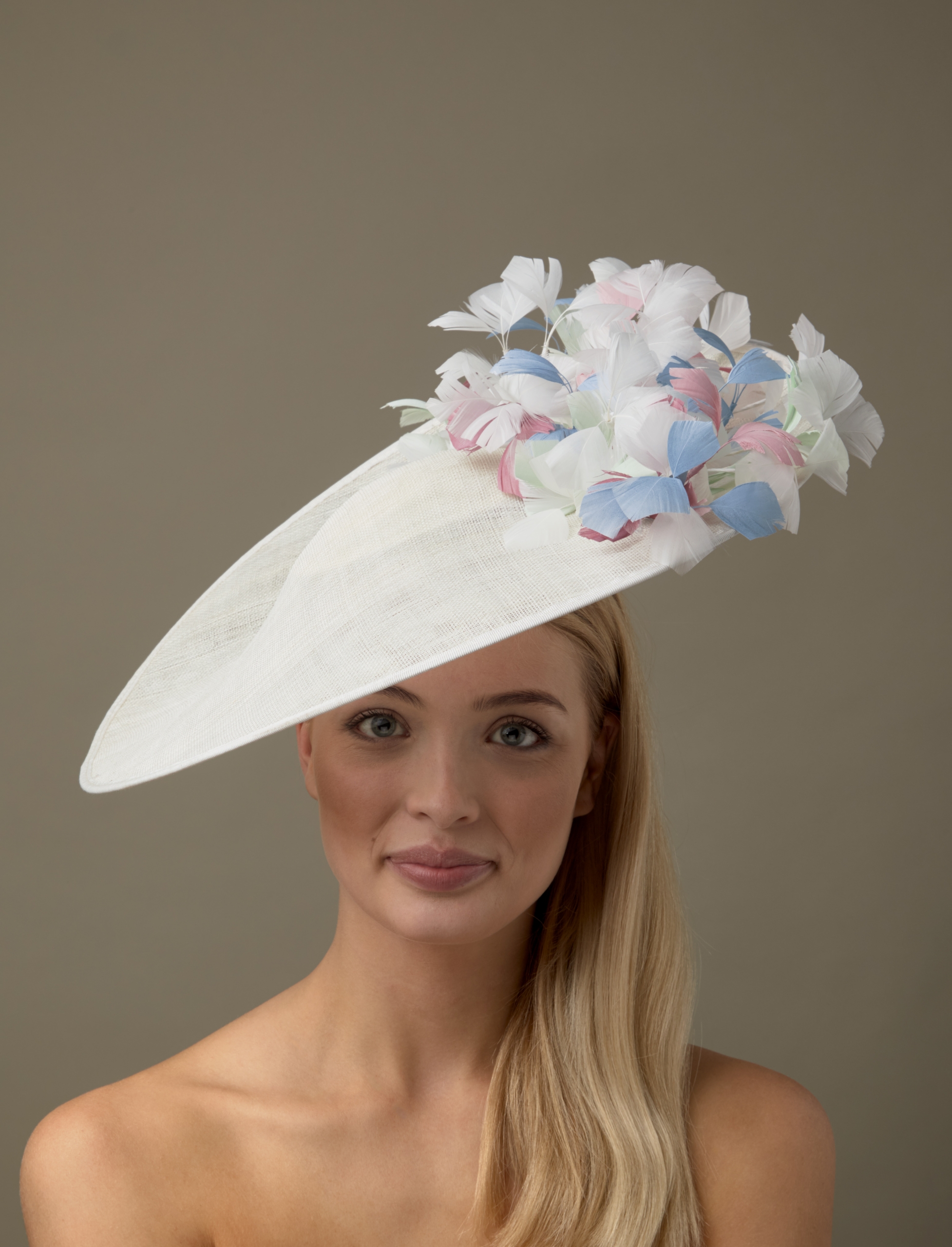 This is such a feminine and delicate take on our dramatic dish hat style, and will be absolutely perfect for a summer wedding.