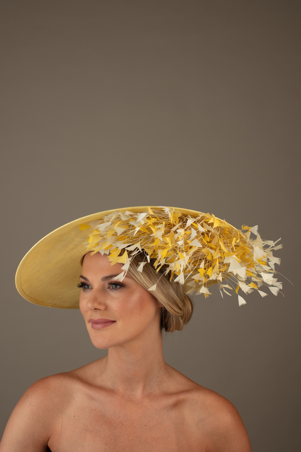The Biarritz Hat comes on a hair band which will be carefully ribbon wrapped to match your hair colour, providing a seamless finish to your outfit.