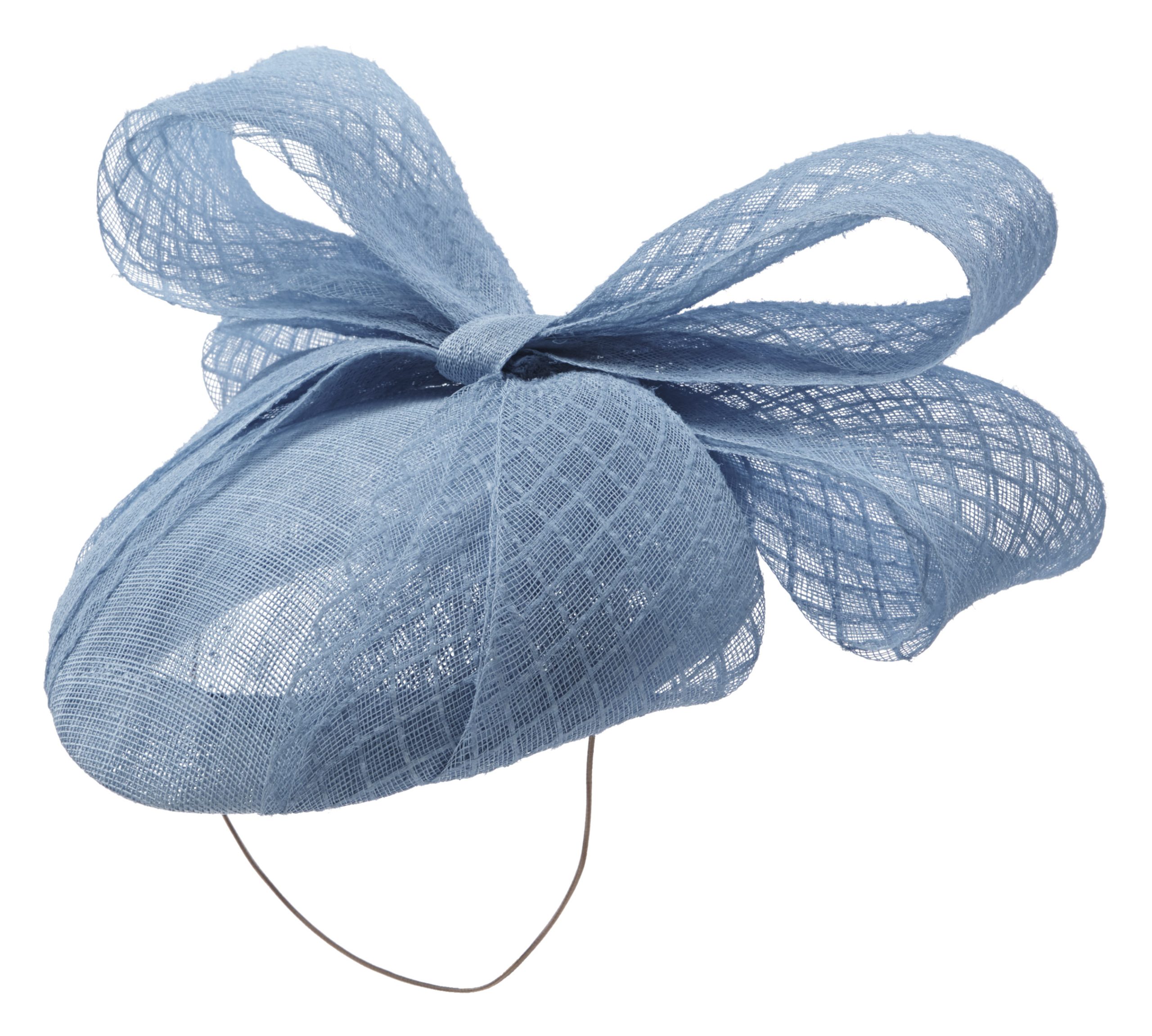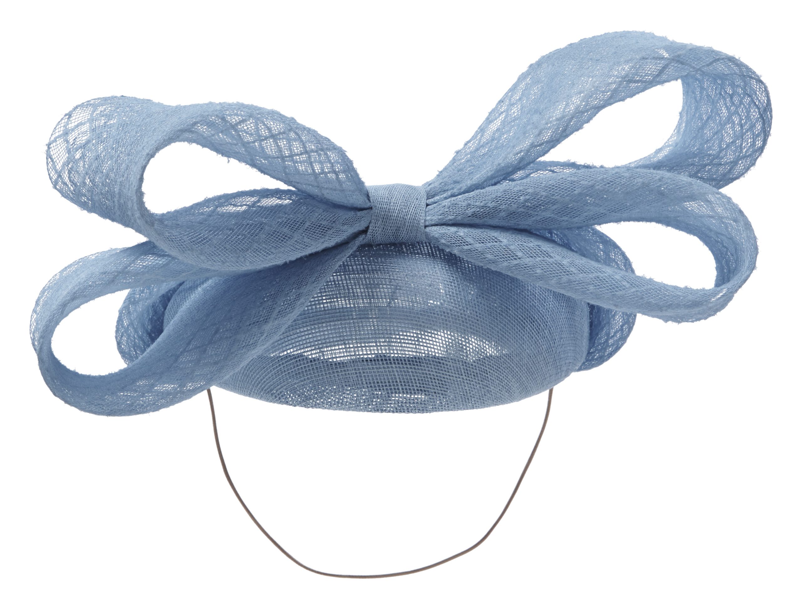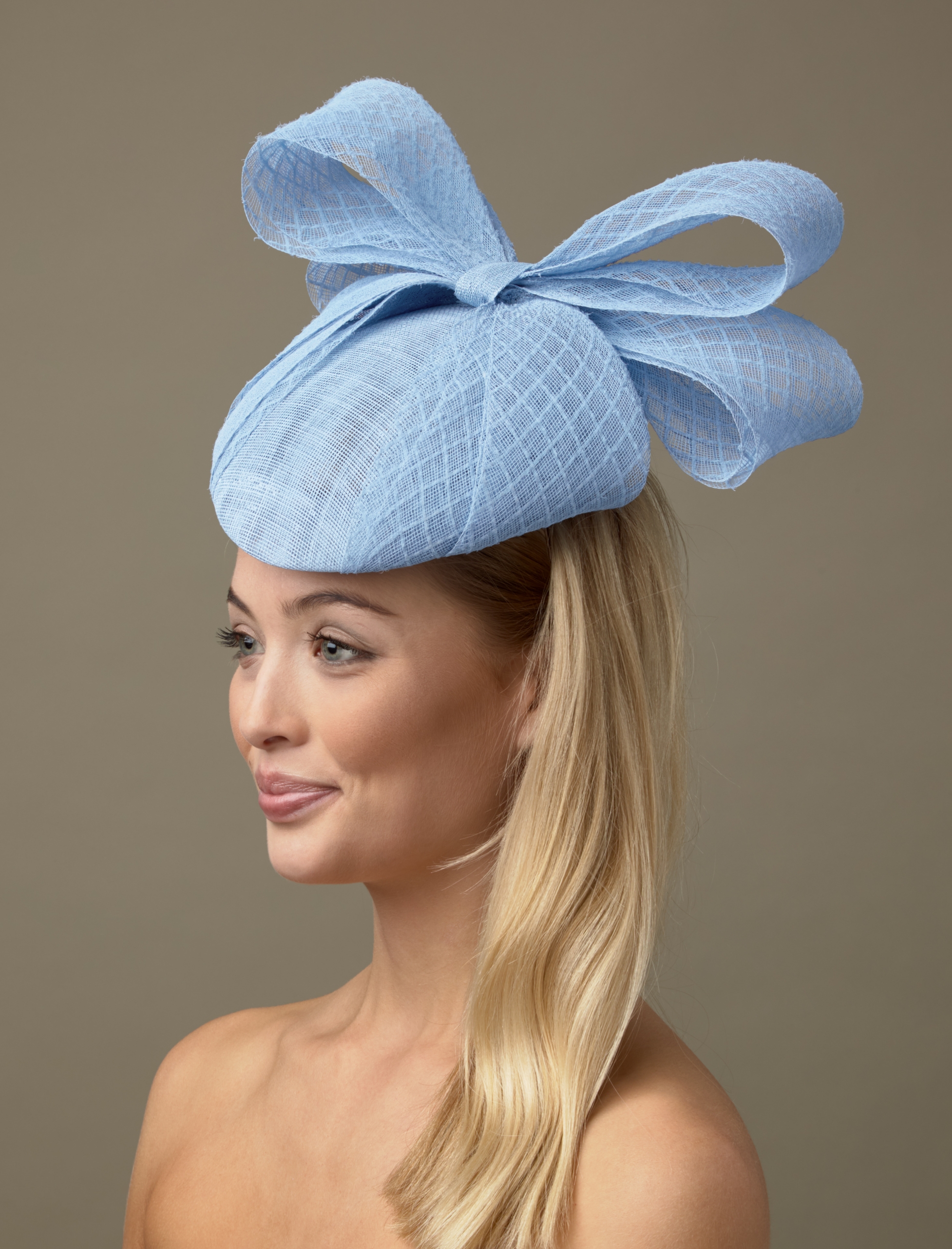 We suggest this hat is fitted with elastic for a closer positioning to your head, however if you would prefer a hair band this is an option too; both of which will be colour matched to your hair colour.