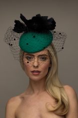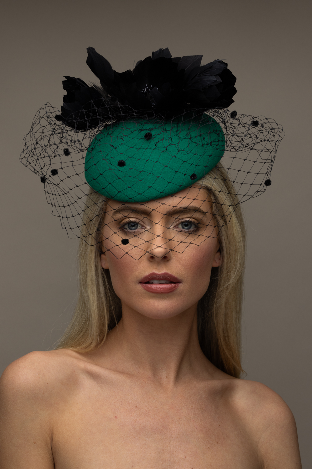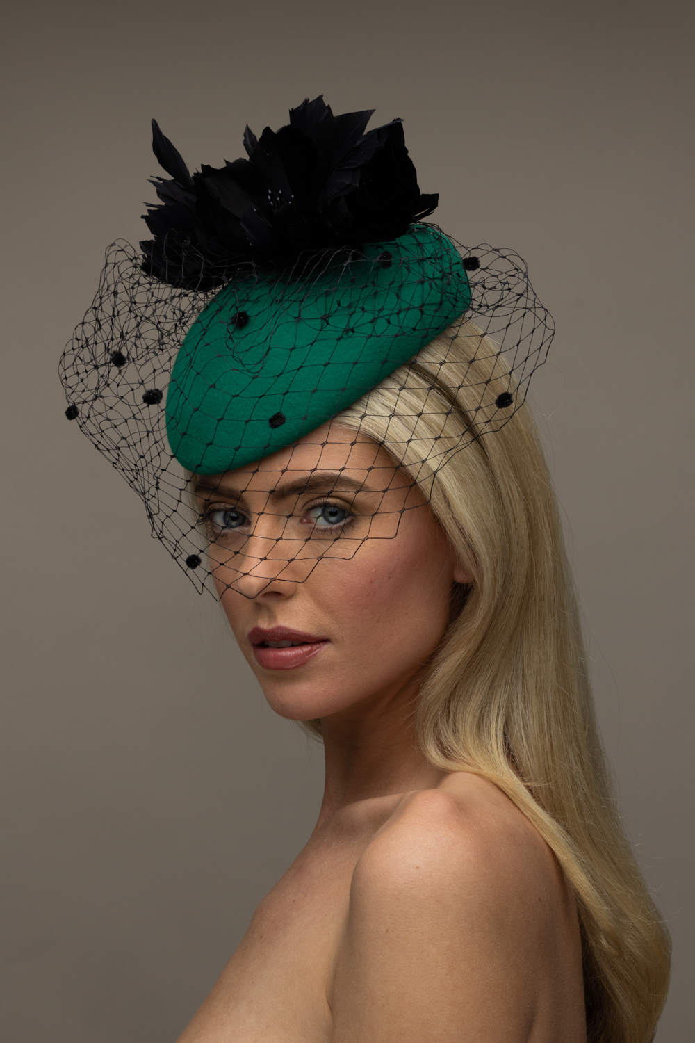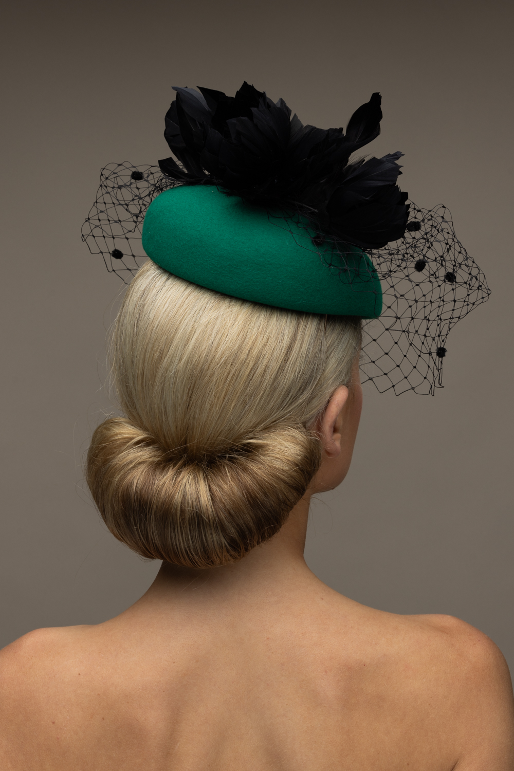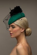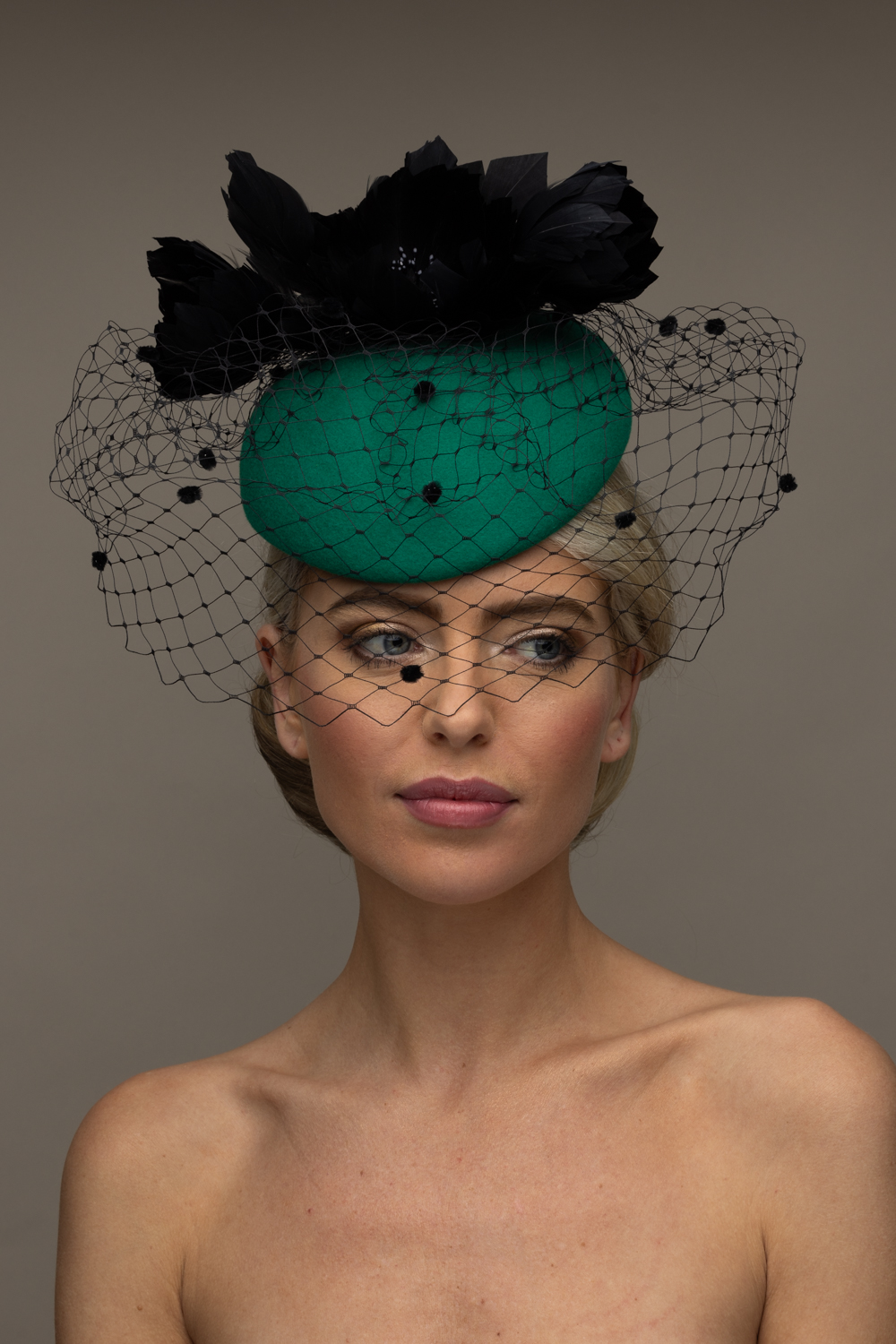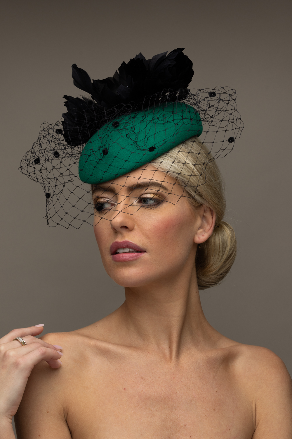 As with all of our hats, you can have your Colorada Pillbox hat base in any colour you wish. Choose your felt base colour here and your veil colours here. We are happy to send out colour swatches so you can be sure that your chosen colours perfectly match your outfit. To order colour samples simply email info@hostiehats.co.uk.