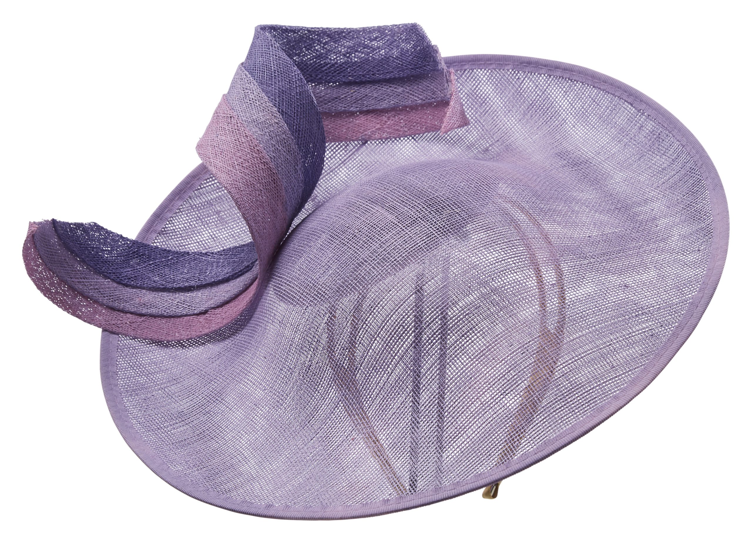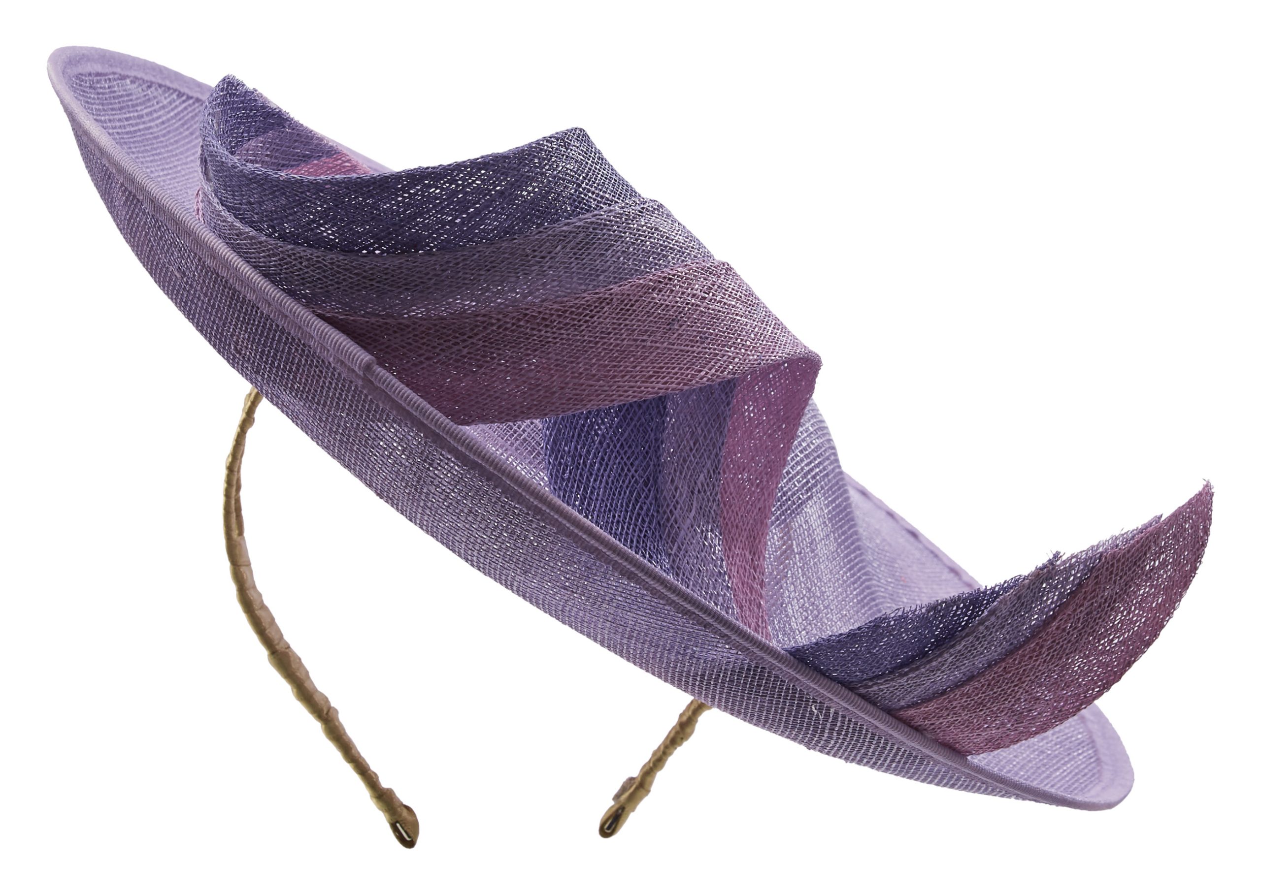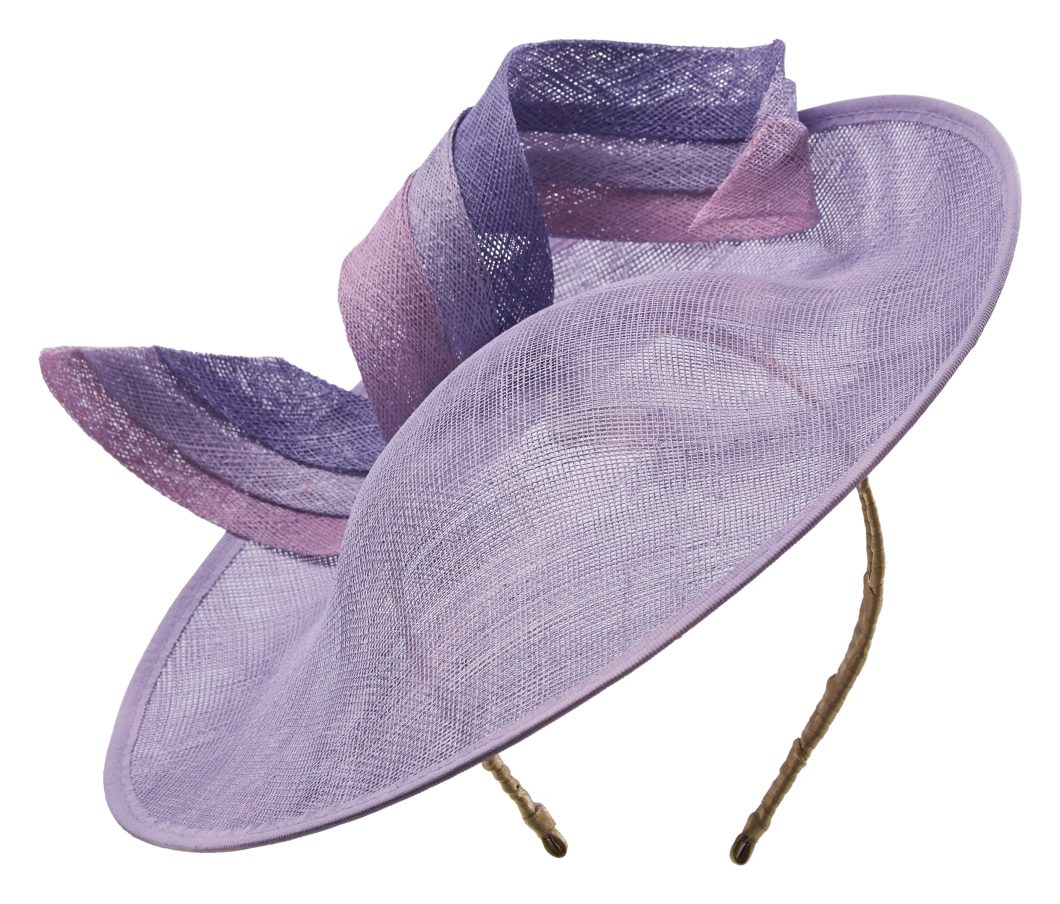 The Daiquiri dish hat is the perfect wedding guest hat or hat for the races. The Daiquiri dish hat comprises a 12 inch sinamay dish base with slightly upturned back, embellished with a beautiful sinamay twirl made up of 3 different colours.