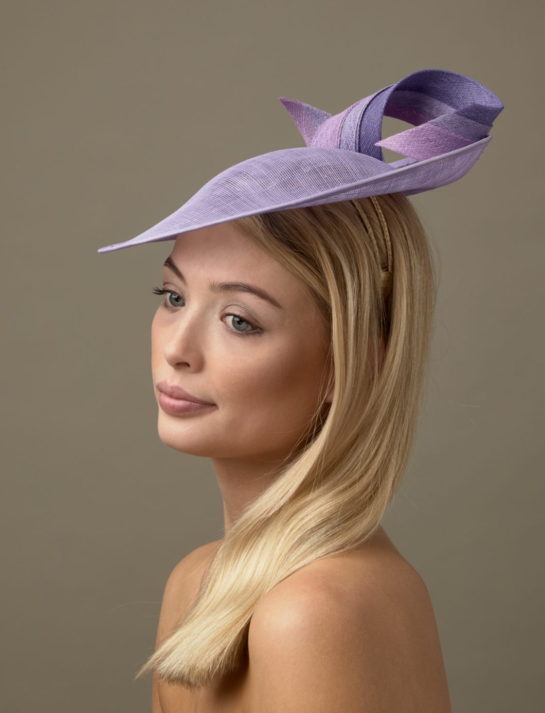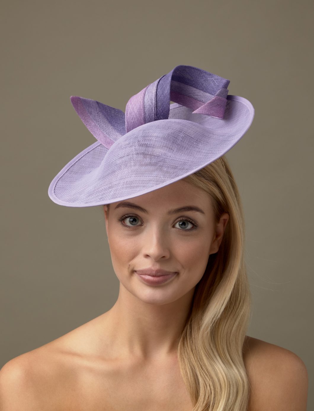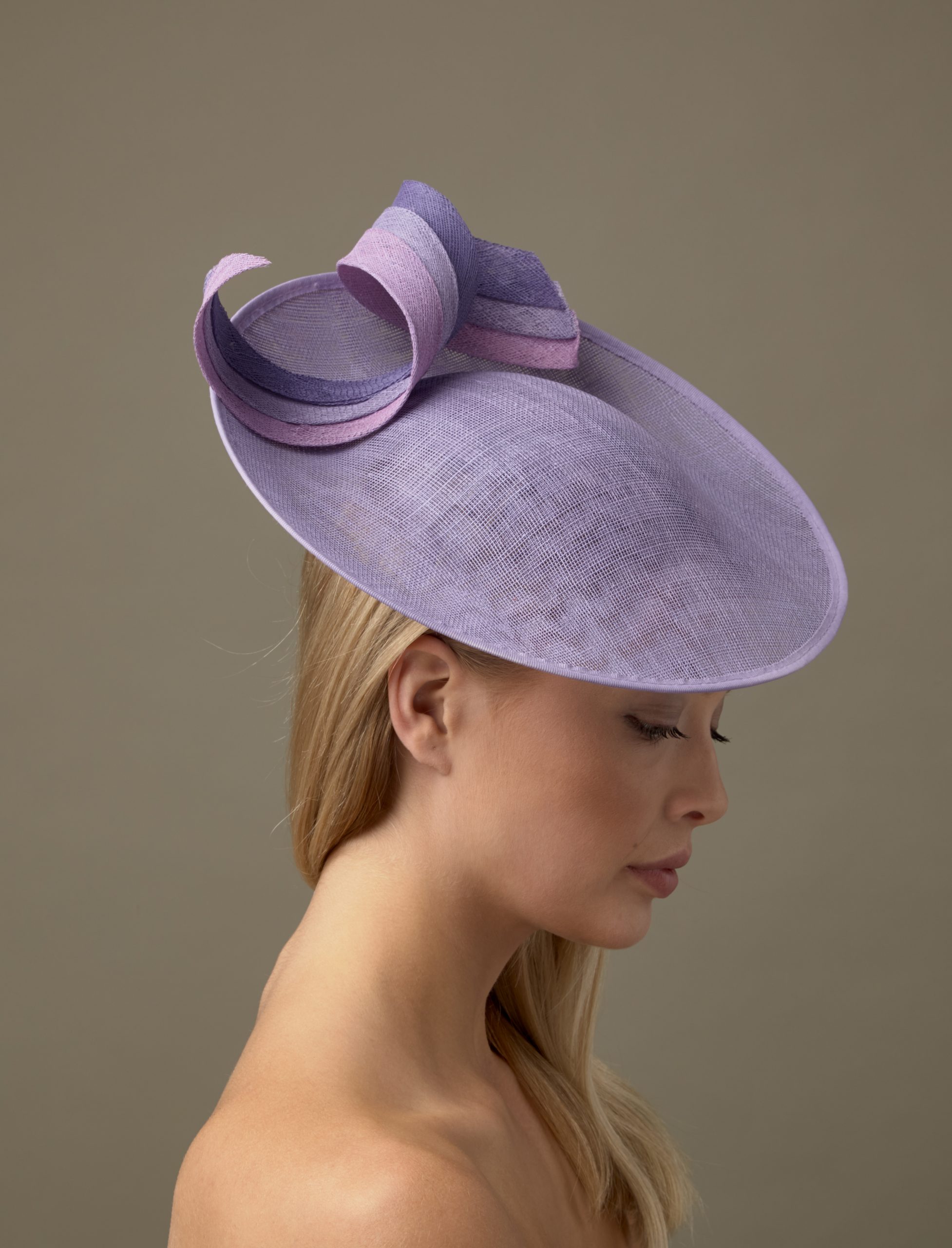 All of our hats are available in any combination of colours from our colour chart. With its tri colour twist of sinamay, this hat is easy to match to your outfit. Please email us on info@hostiehats.co.uk if you need us to send you some colour swatches.