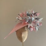 This hat comes on a hair band which we will ribbon wrap to match your hair colour.