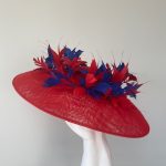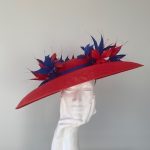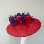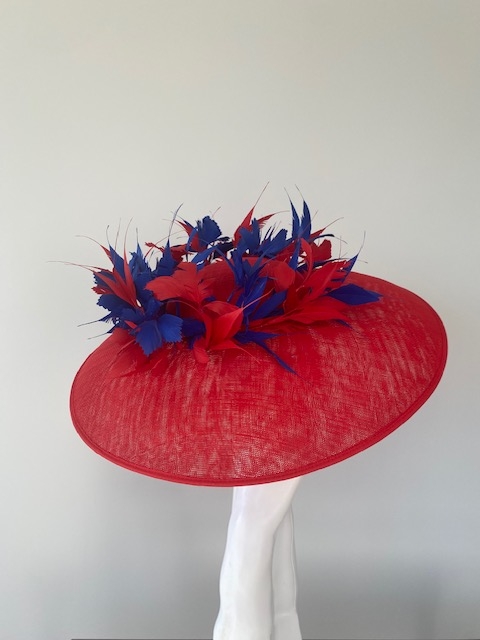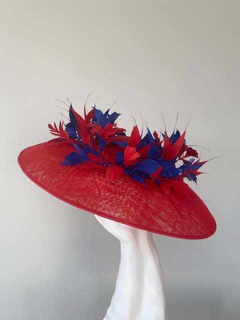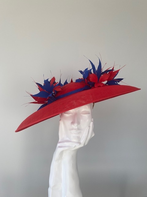 The Exclusive 033 hat comprises a large sinamay base with a shallow crown, trimmed with cut feathers.