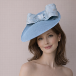 The Exclusive Hat 039 is a dish hat which is moulded close to the head which is adorned with a beautiful bow made from fabric. The hat sits on a comfortable, ribbon-wrapped double headband.