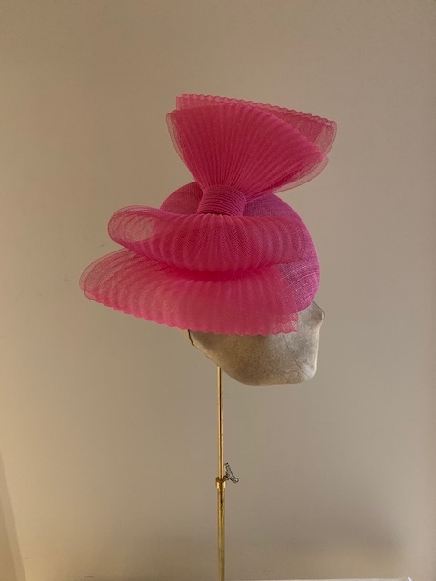 The Fleury Pillbox Hat is a beautifully chic hat that is perfect for a summer special occasion, whether its a wedding or a day at the races. The Fleury Pillbox hat comprises a sinamay pillbox base trimmed with a large double bow tied from pleated crinoline.