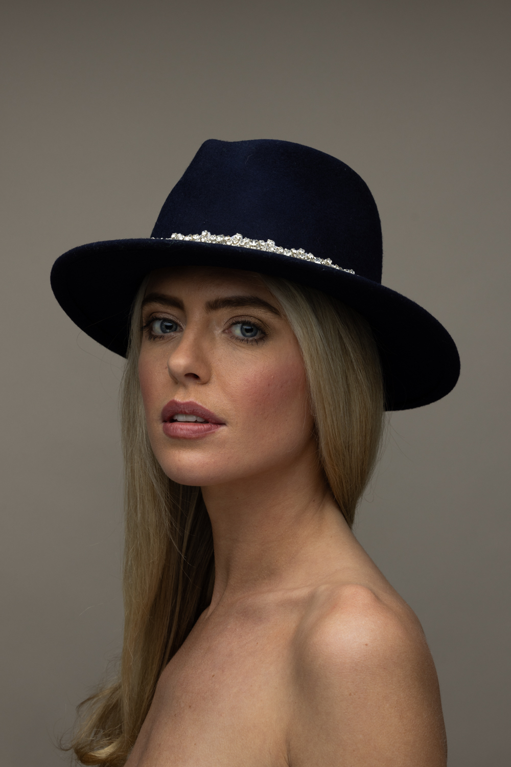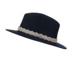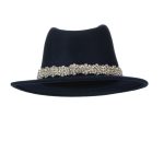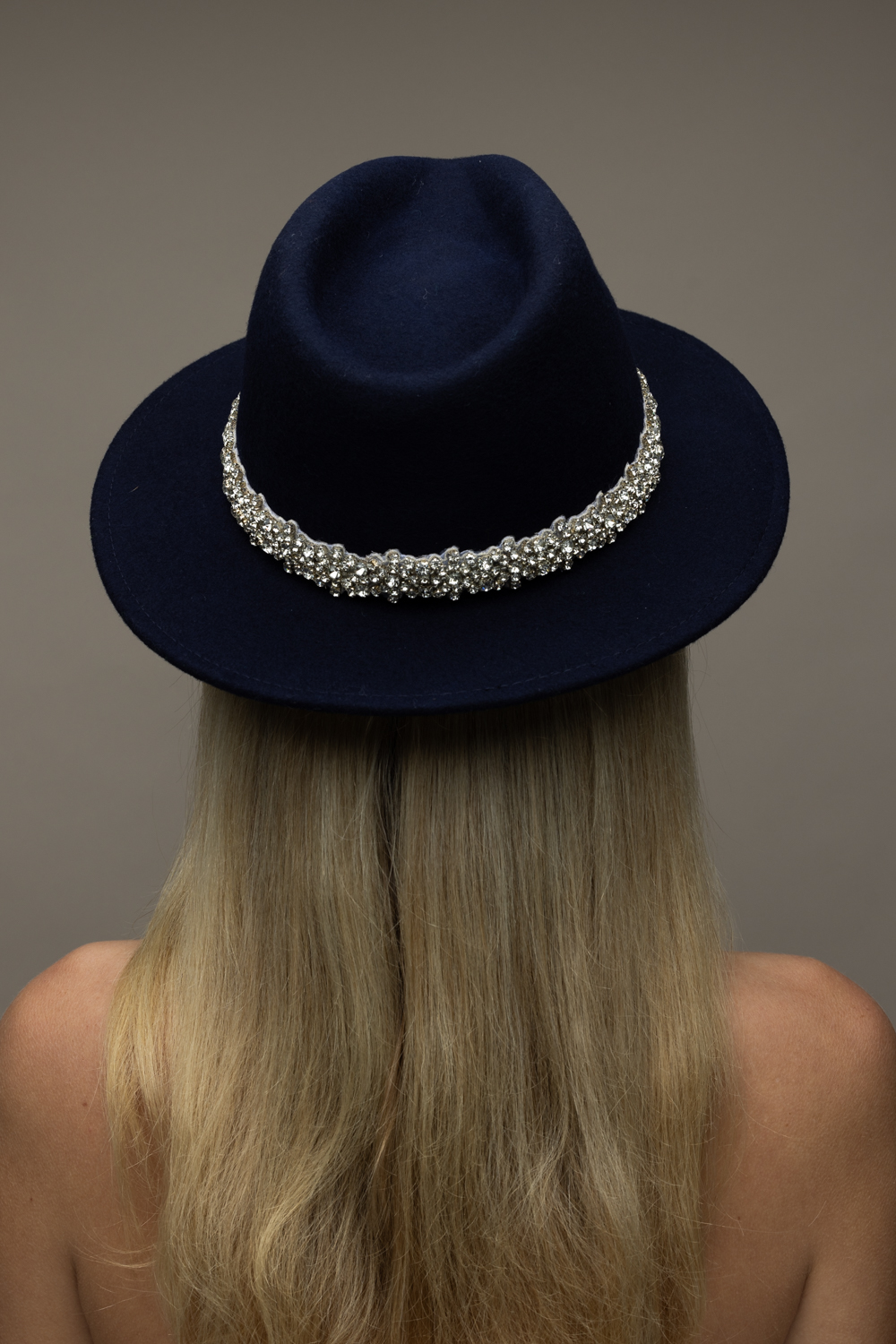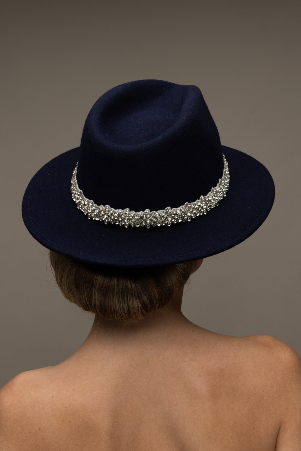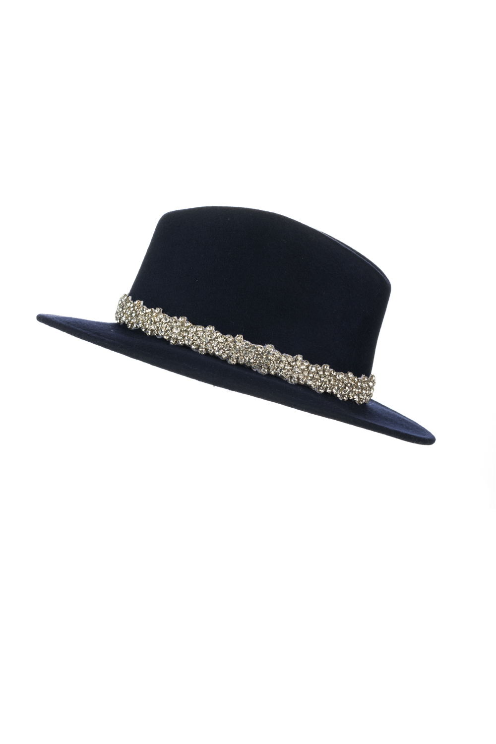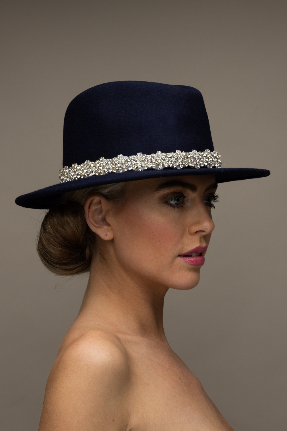 The Grand fedora hat comprises a felt fedora base trimmed with a hat band of diamante crystals. This fedora hat is perfect for bringing the glamour to your winter walk, shopping trip or day at the races.