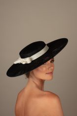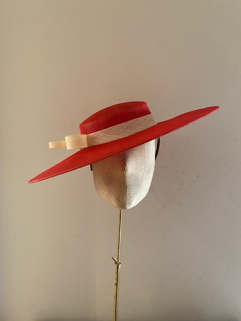 We love this hat with a different coloured Band/Bow to the base but it is possible to have the Gras Hat in any colour way you would like. We have an extensive colour chart to choose from and are happy to send out colour swatches so you can be sure that your chose colours perfectly match your outfit. To order colour samples simply email info@hostiehats.co.uk.
