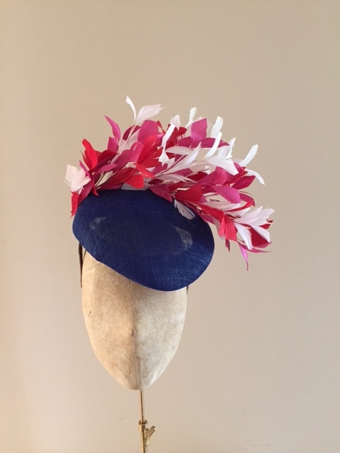 The Hayworth Pillbox Hat is a beautiful, petite summery head piece and is perfect if you are attending a wedding or a day at the races. The Hayworth pillbox hat is made up of a sinamay pillbox base adorned with cut coque feathers in up to 3 different colours.