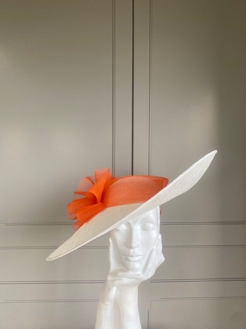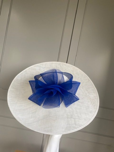 This hat comes on a ribbon wrapped double headband which will be matched to your hair colour.