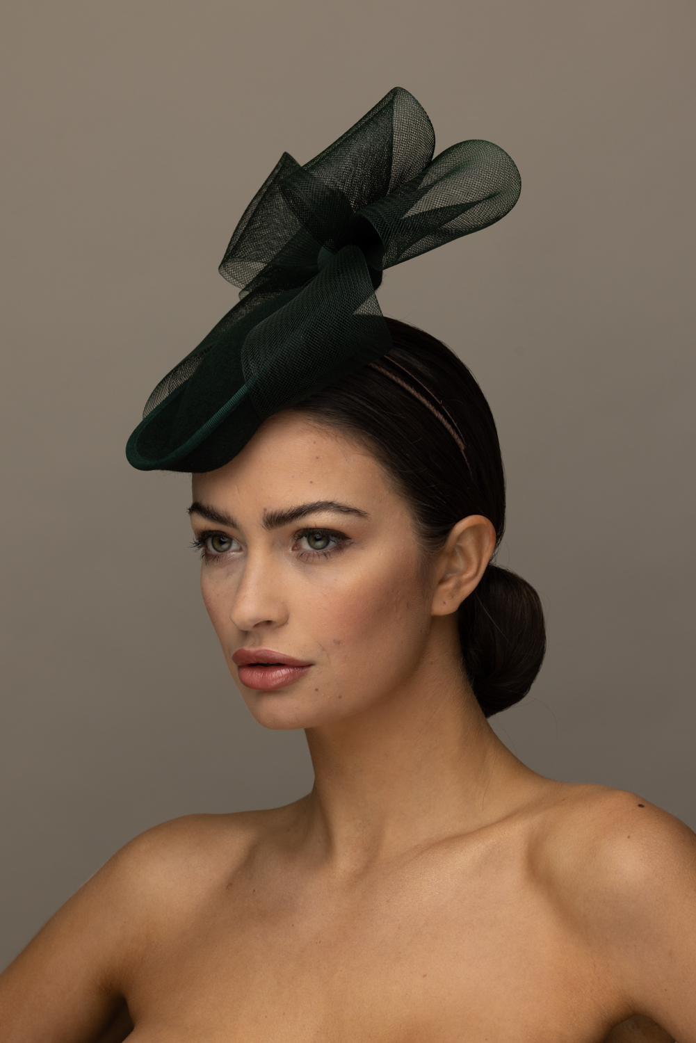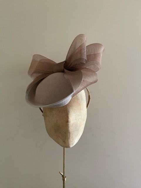 The hat comes on a comfortable double headband which will be ribbon wrapped to match your hair colour.