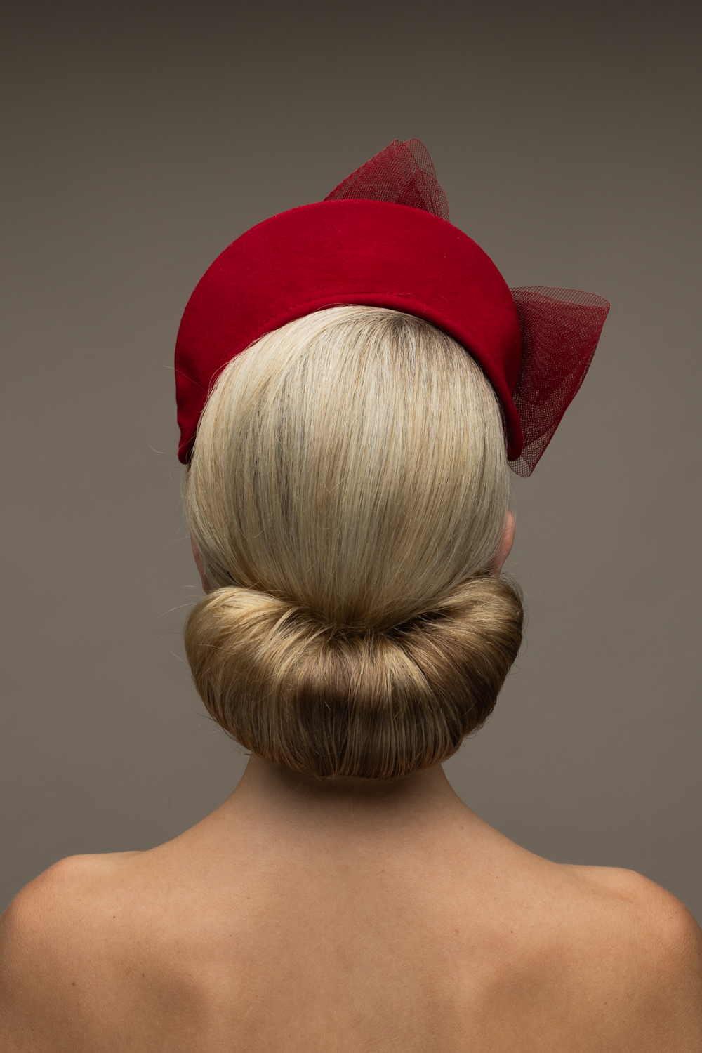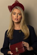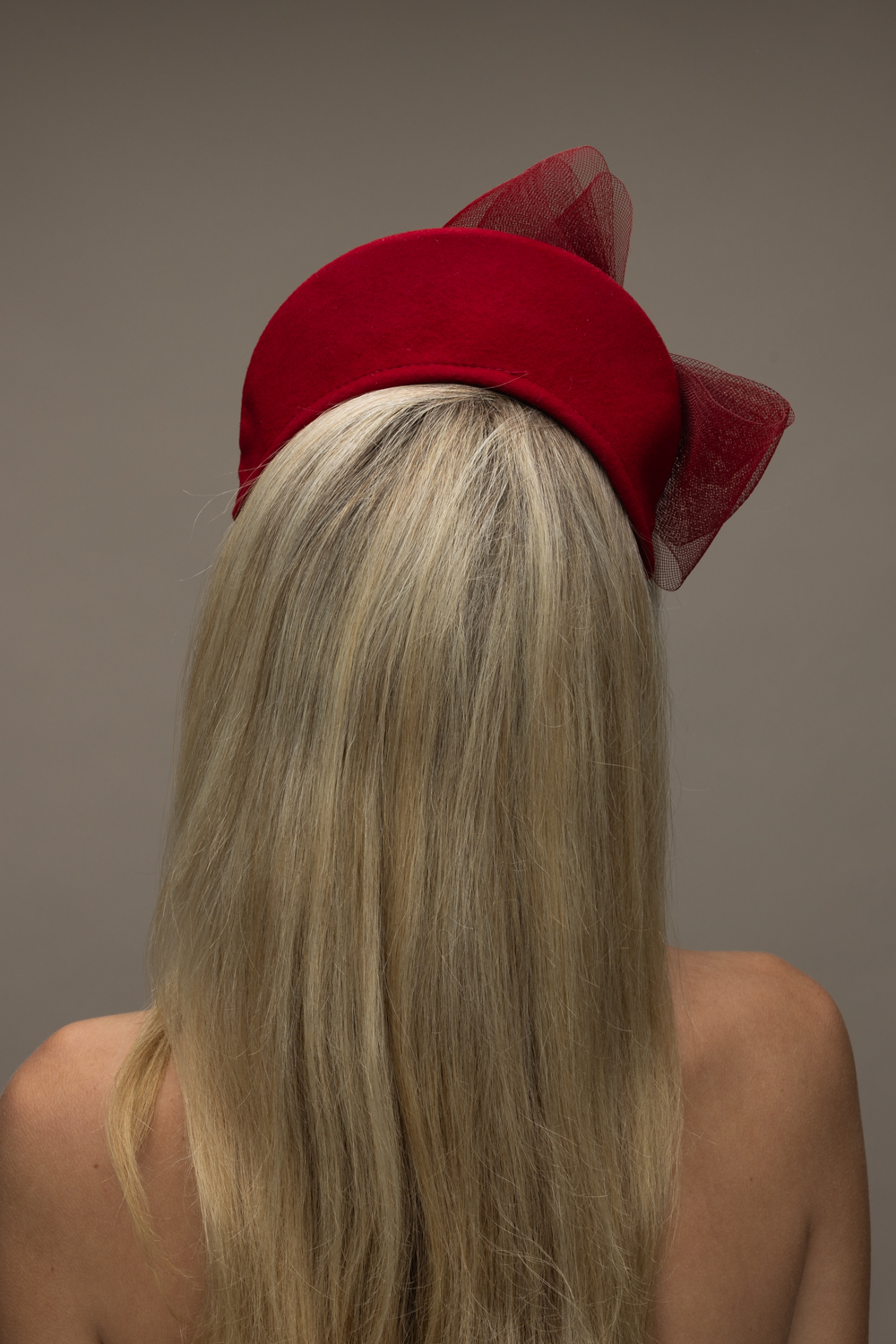 As with all of our hats, you can have your Missouri Headband in any colour you wish. Choose your felt base colour here. and your bow colour here.We are happy to send out colour swatches so you can be sure that your chosen colours perfectly match your outfit. To order colour samples simply email info@hostiehats.co.uk.
