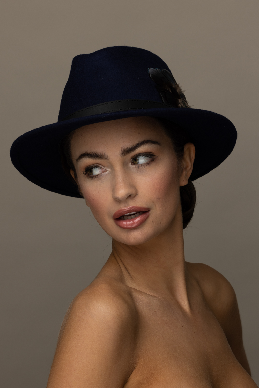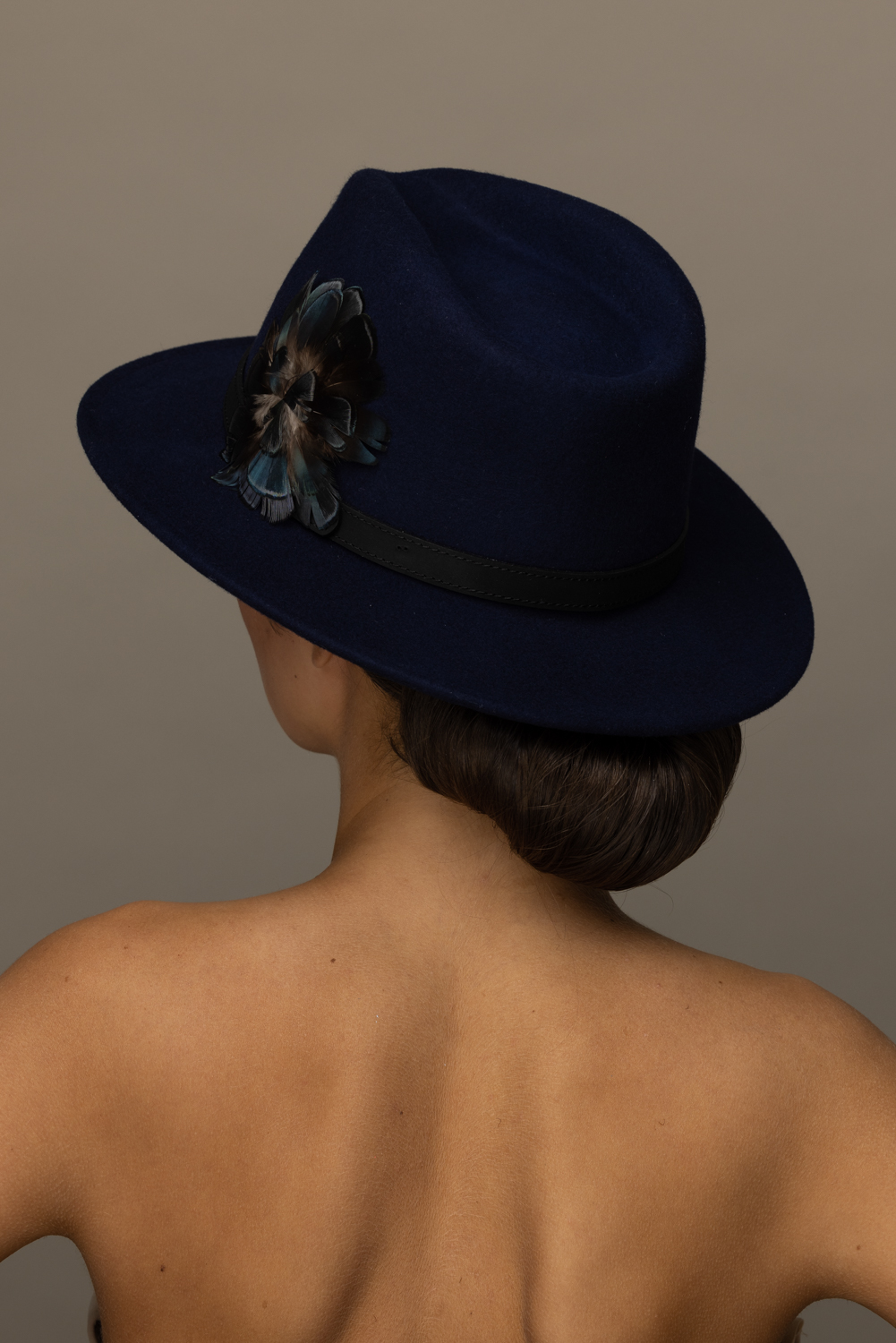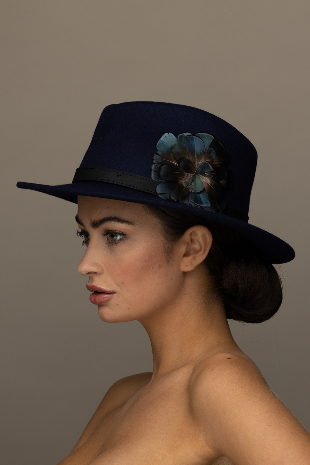 The Myrtle Fedora hat is a great way to accessorise an everyday winter outfit. Whether for a trip into town, a winter race meeting or on the shooting field, the Myrtle fedora will make a statement. The Myrtle Fedora hat comprises a fedora hat base trimmed with a black leather hat band and pheasant feather circle.