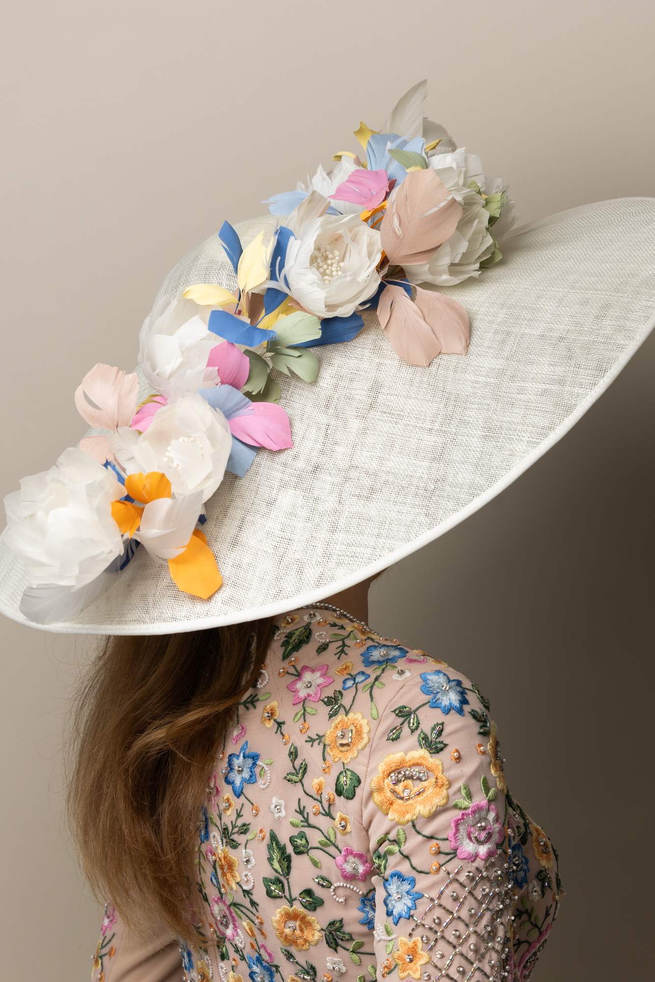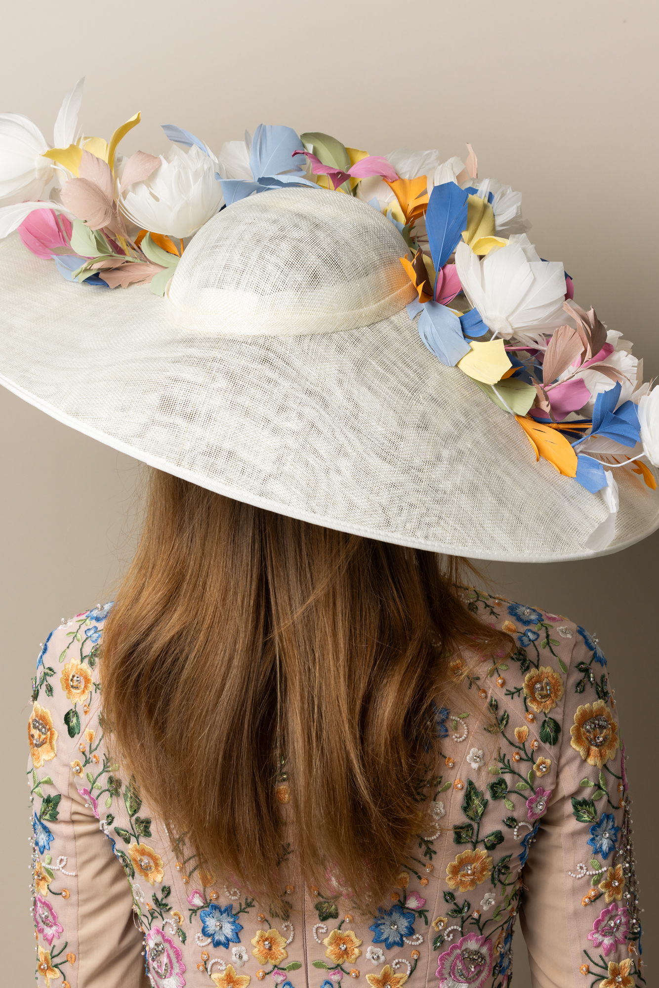 We also offer a free colour-matching service. If you would like us to help you style your hat to your outfit, please select a hat style, choose ‘request a colour consultation’, and checkout as usual. We will then be in touch to help you choose colours to match your outfit and the occasion perfectly.