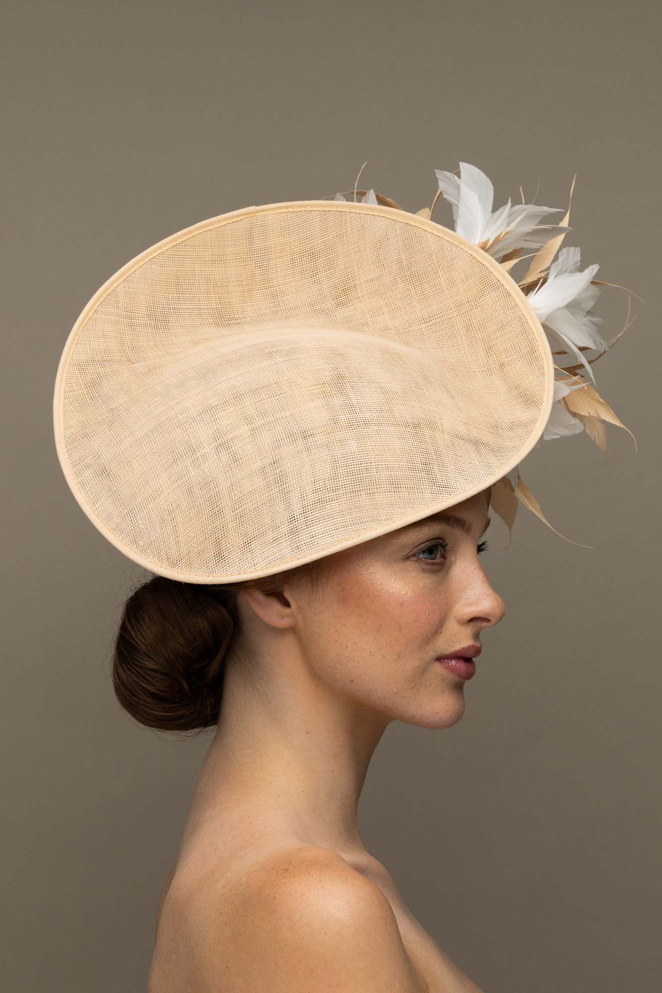 As with all of our hats you can customise your Osprey Dish Hat in any colour combination you wish. We have an extensive colour chart to choose from and are happy to send out colour swatches so you can be sure that your chosen colours perfectly match your outfit. To order colour samples simply email info@hostiehats.co.uk.