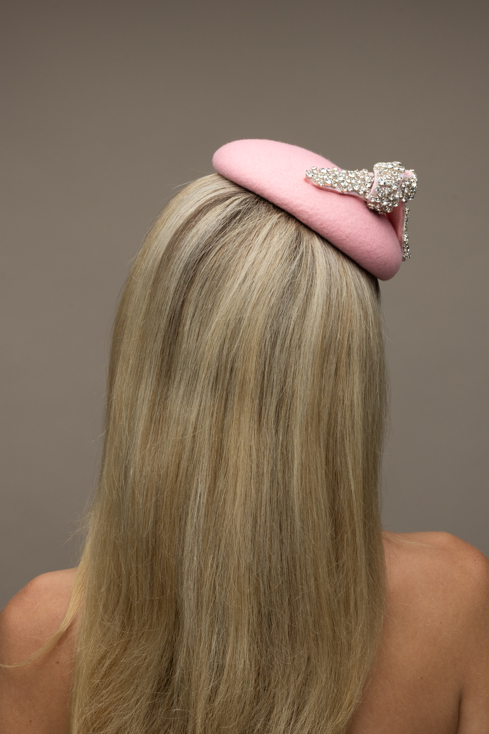 The Panama Pillbox hat comprises a neat, felt pillbox base trimmed with a crystal knot. Understated yet glamorous, we think that this hat will take you to any autumn/winter occasion.