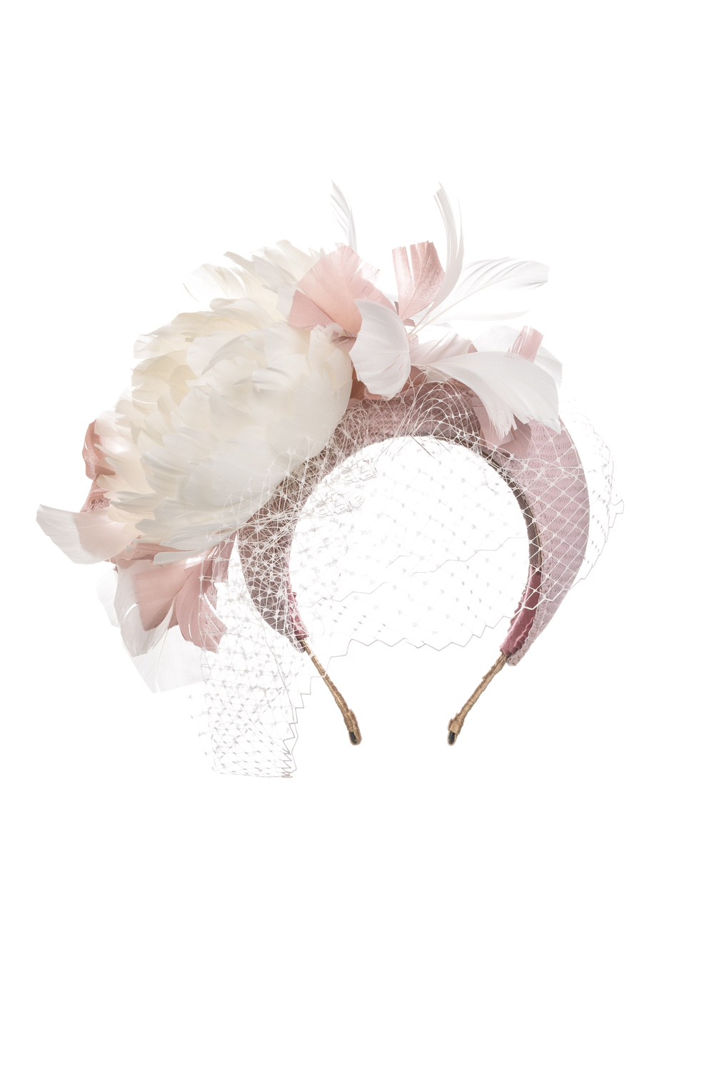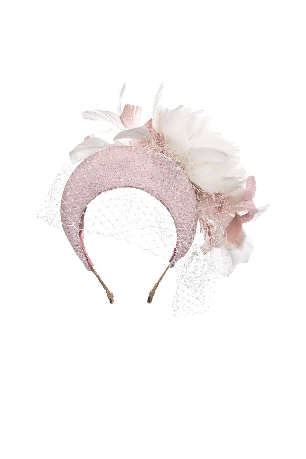 The Pierce headband is the perfect alternative to a hat for your summer special occasion. The headband comprises a straw band base trimmed with a large feather flower, some extra feathering and a veil.
