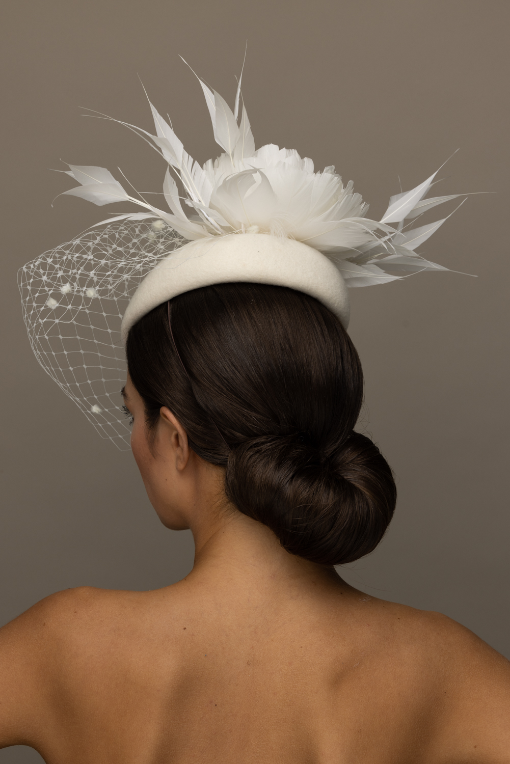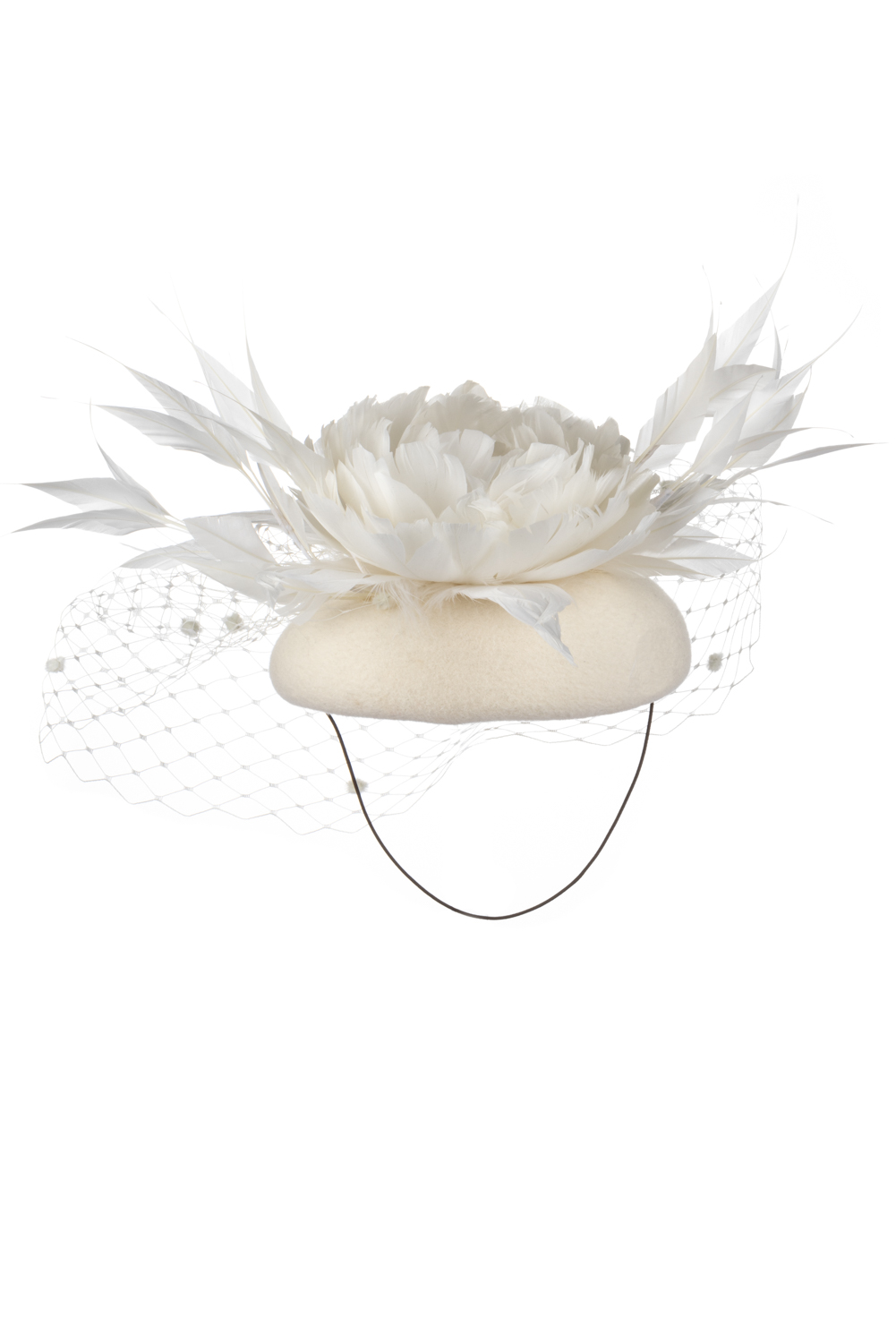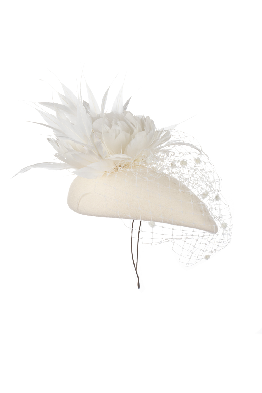 As with all of our hats, you can have your Pine hat in any colour way you wish. Choose your felt base colour here and your feather and veil colours from this  extensive colour chart. The feather flower is available in either ivory or black. We are happy to send out colour swatches so you can be sure that your chosen colours perfectly match your outfit. To order colour samples click here.