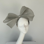 The Bailey headband comprises a comfortable double headband covered in a wide sinamay band adorned with a large triple looped bow made from plain crinoline