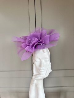 The John Charles Norwich headband comprises a ribbon wrapped double headband, which will be matched to your hair colour, generously topped with a crinoline swirl which is interspersed with wired crystals.