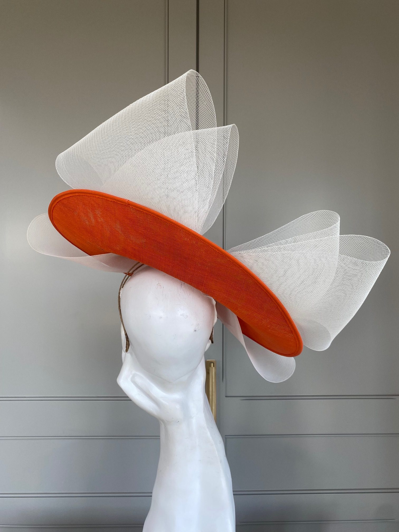 Home / Shop / Ready to Wear Orange/Ivory Penzance Dish Hat