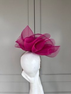 The John Charles Norwich headband comprises a ribbon wrapped double headband, which will be matched to your hair colour, generously topped with a crinoline swirl which is interspersed with wired crystals.
