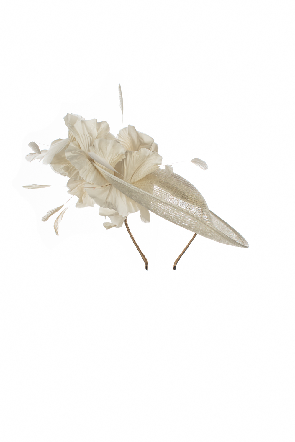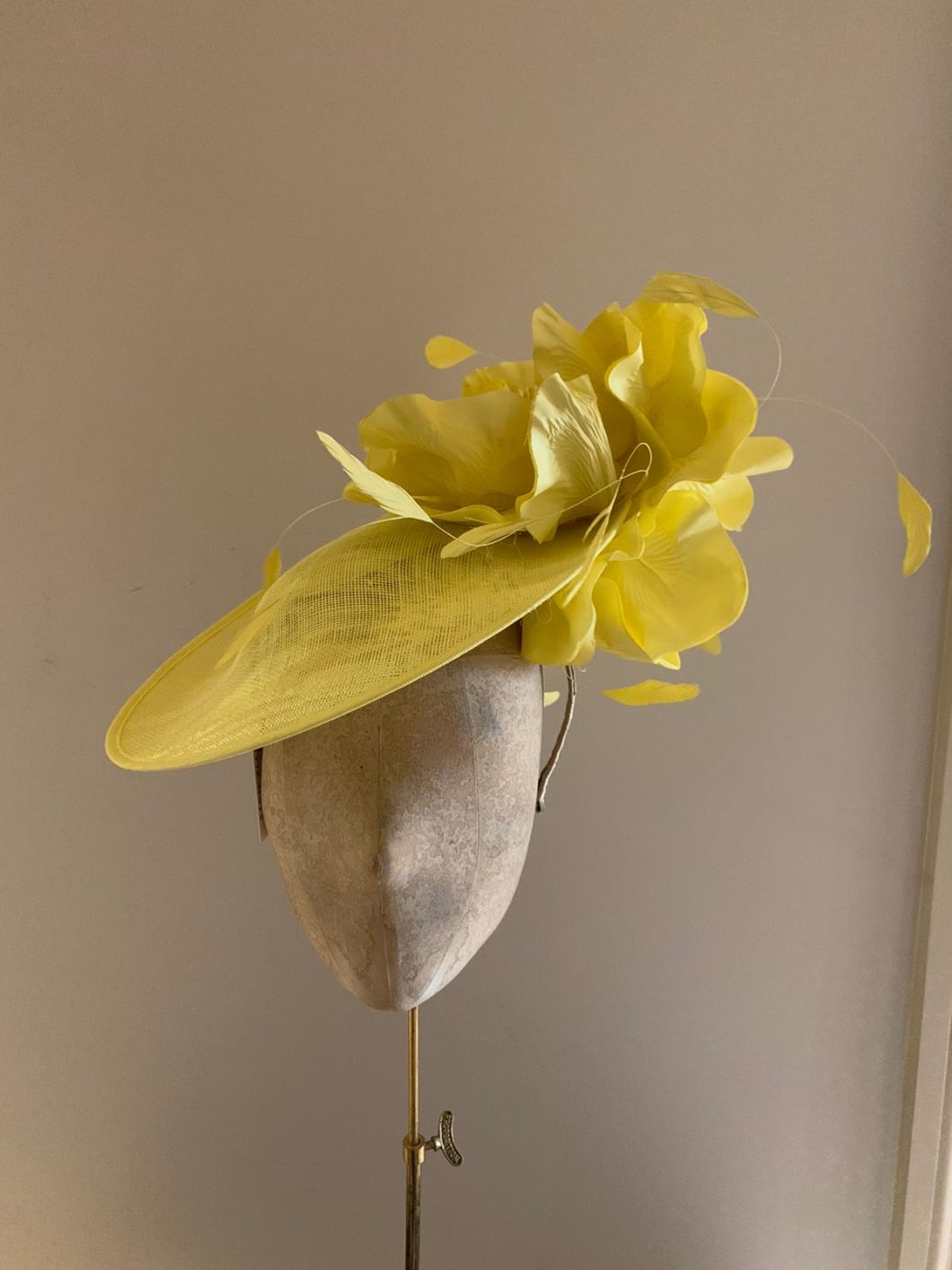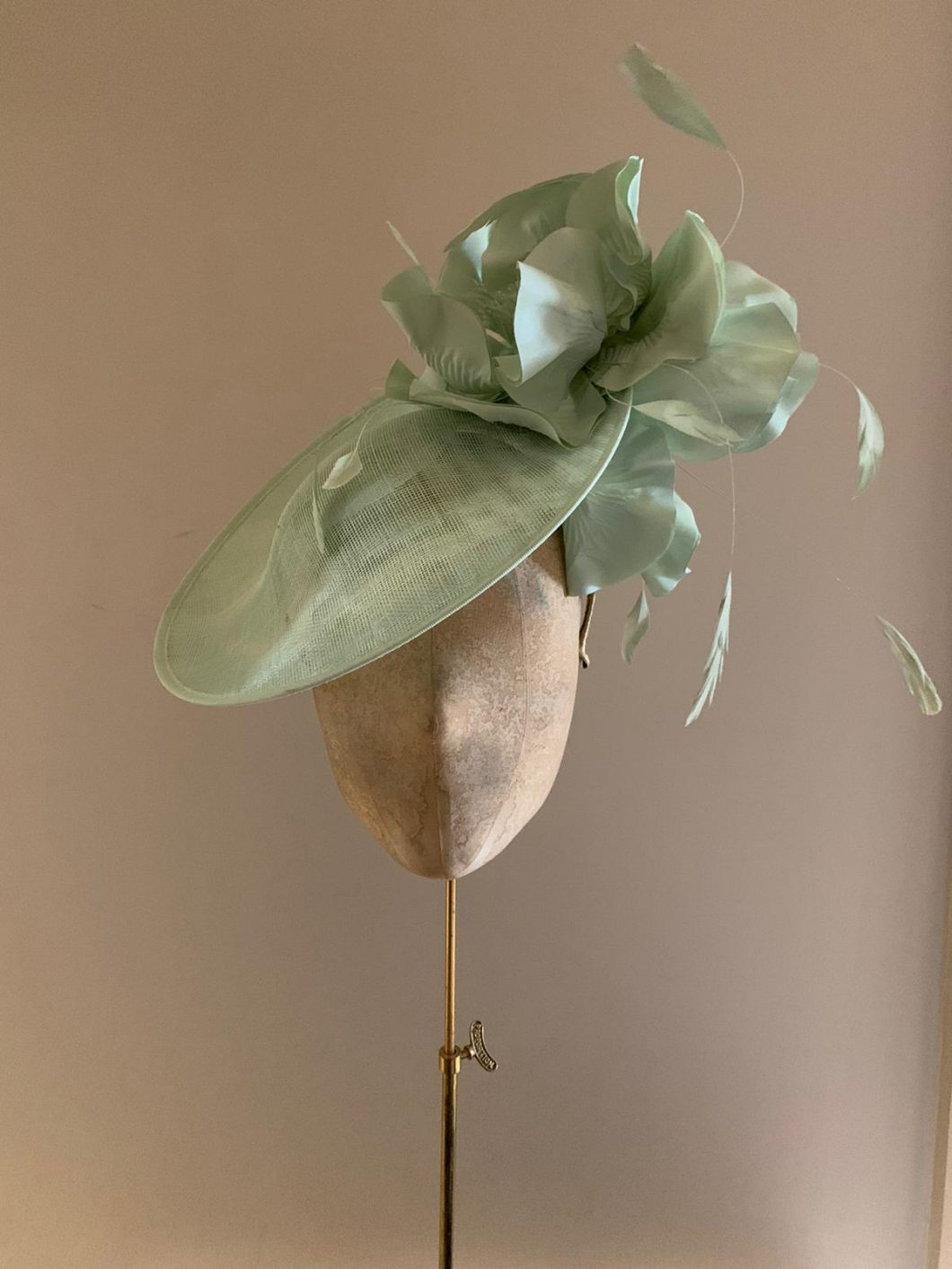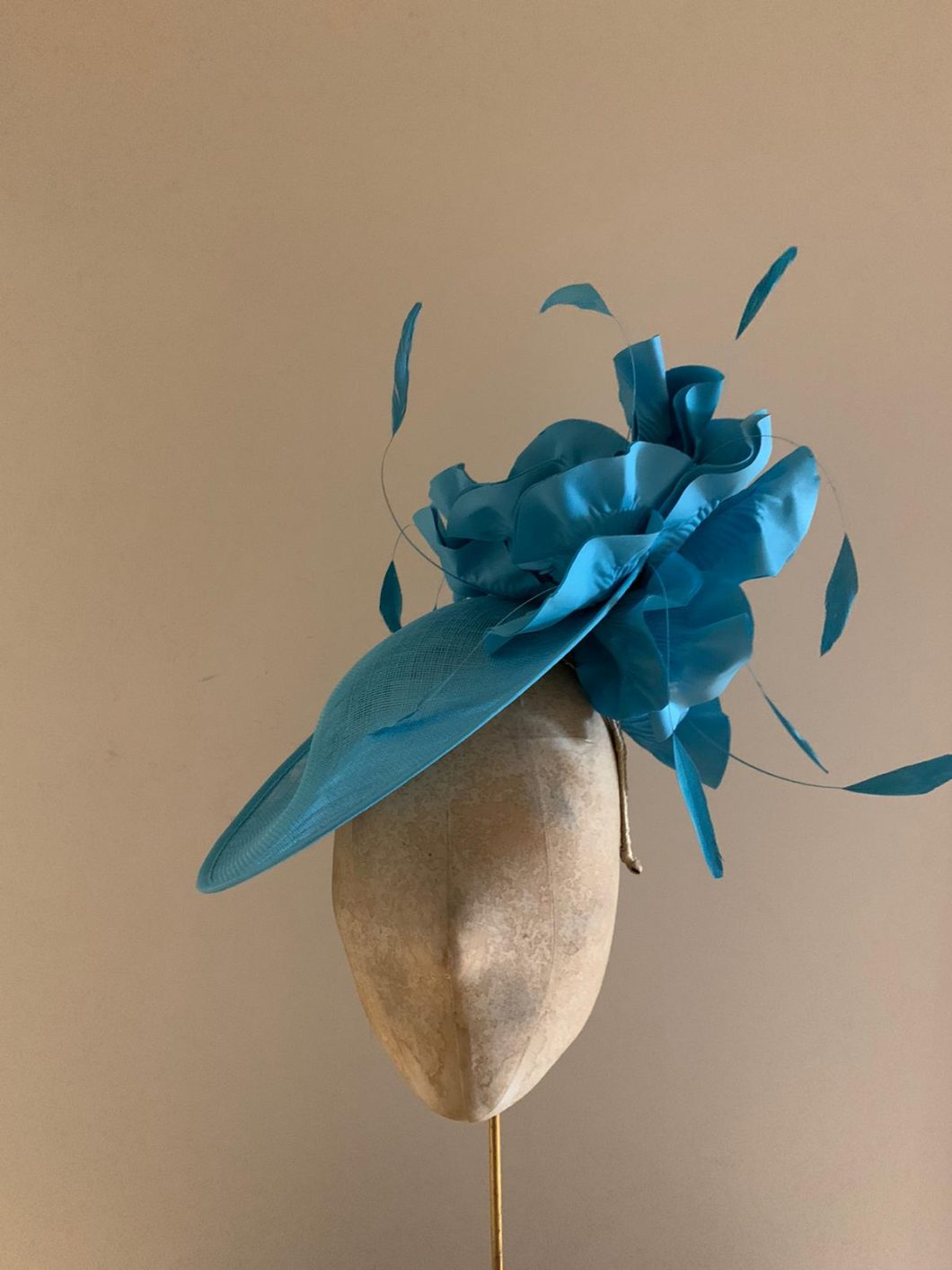 As with all of our hats, you can have your Roche hat in any colour way you wish. We love it in one colour but you can choose to have a contrasting base and flower colours. We have an extensive colour chart to choose from and are happy to send out colour swatches so you can be sure that your chose colours perfectly match your outfit. To order colour samples simply email info@hostiehats.co.uk.