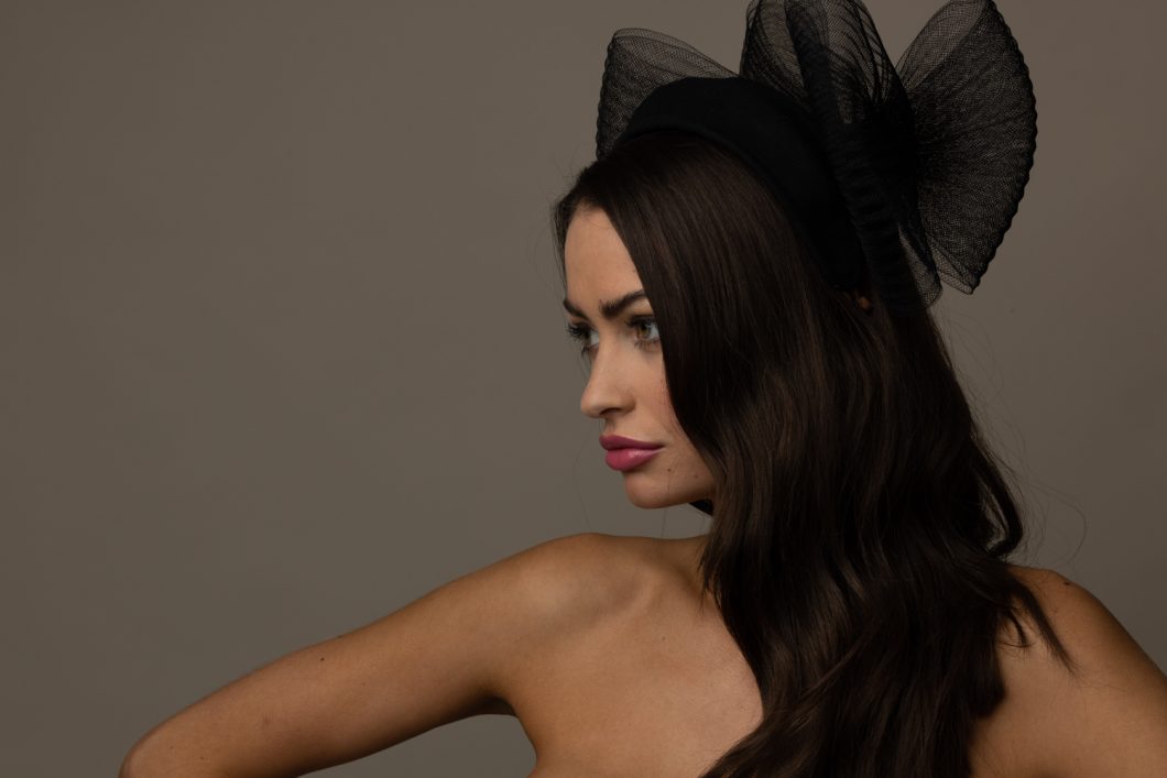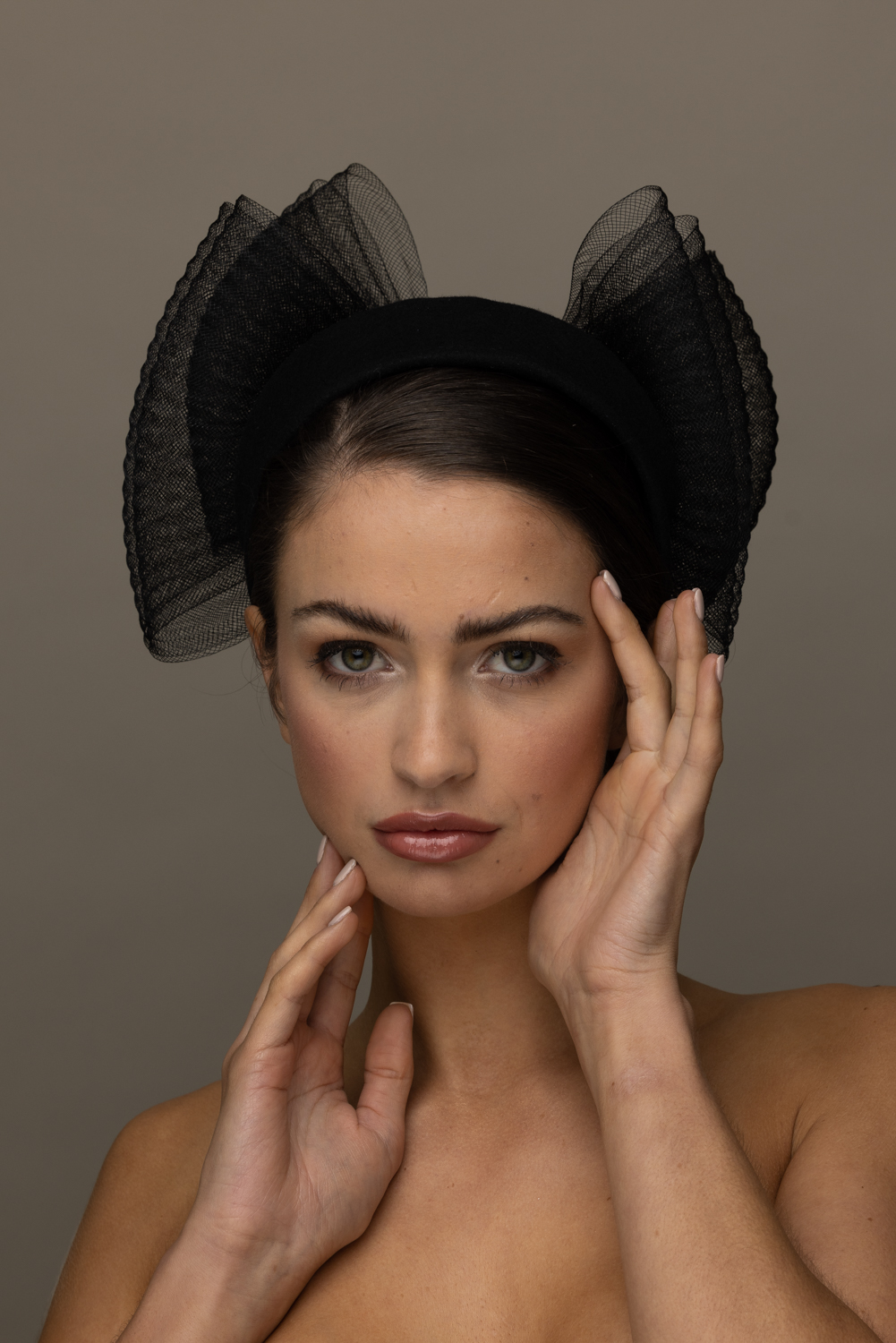 The Rose Headband is a fabulous headpiece for your winter special occasion. The headband comprises a deep felt headband base trimmed to the back with a large bow of pleated crinoline.