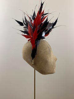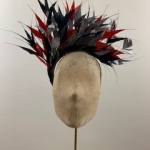 This headband comprises a comfortable double sided headband adorned with a variety of cut feathers.