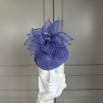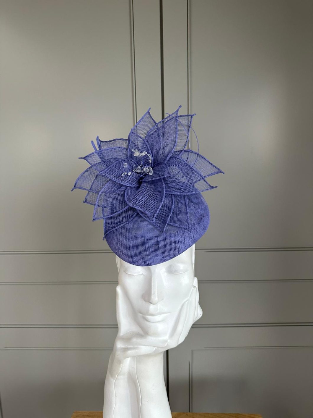 A sinamay cap trimmed with a large sinamay flower, with a crystal diamanté centre