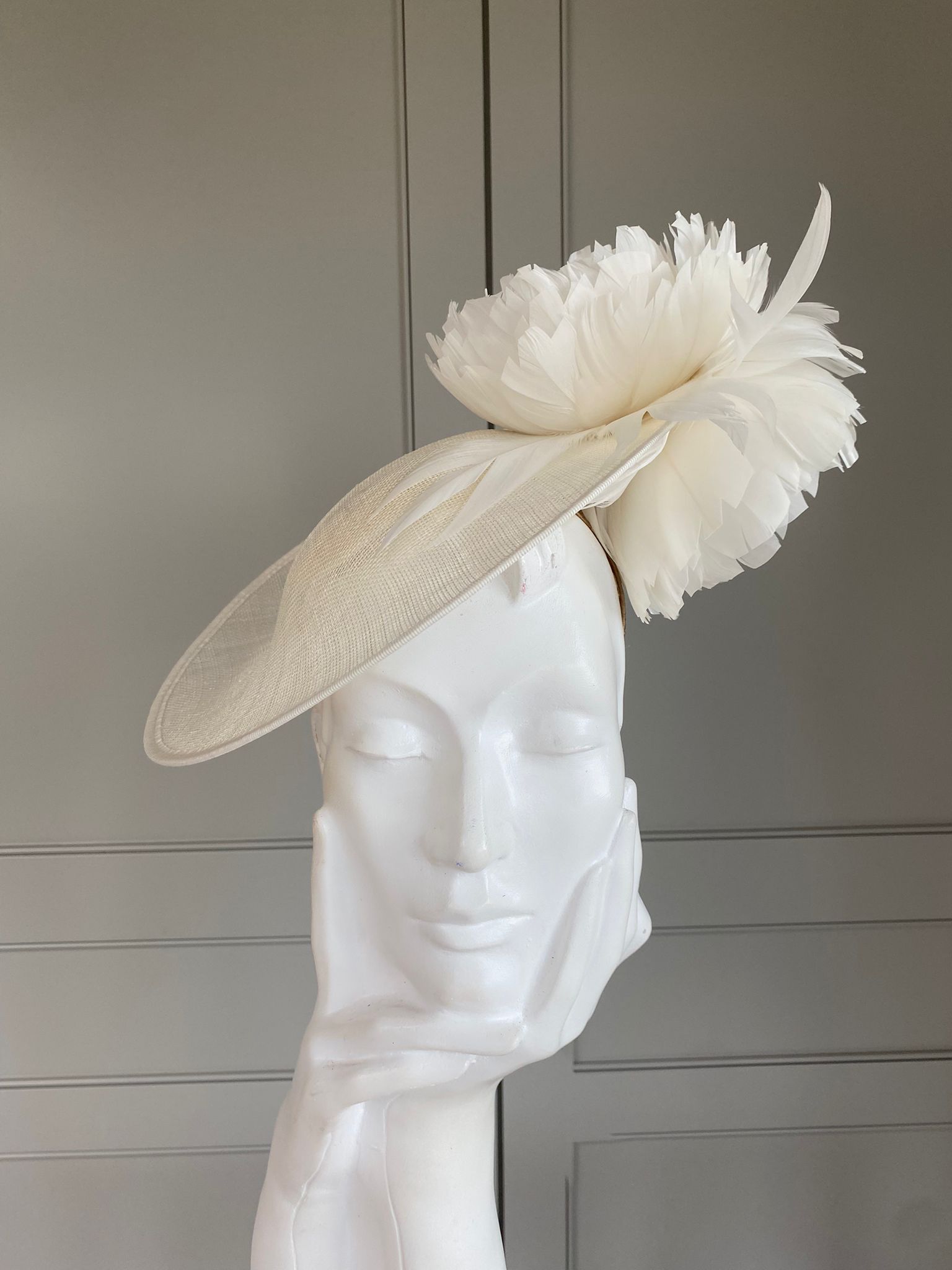 A 12″ Dish trimmed with two feather flowers either side of the dish