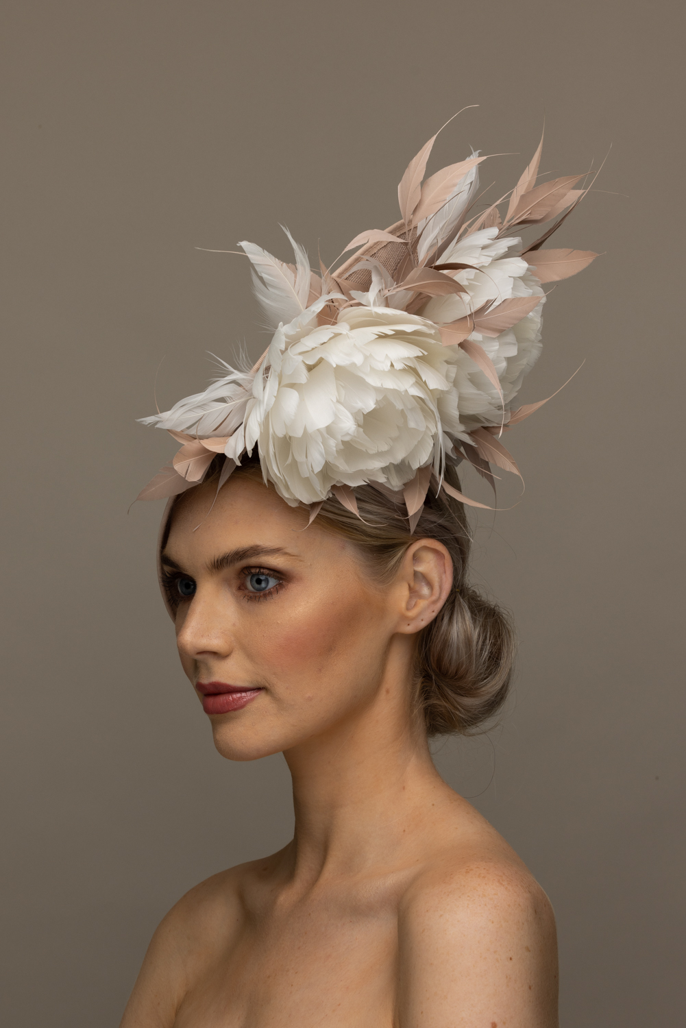 This hat comes on a comfortable double head band which we will ribbon wrap to match your hair colour.
