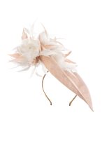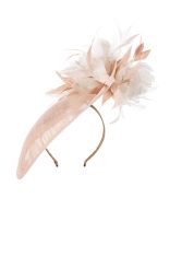 This hat comes on a comfortable, ribbon wrapped double headband which we will match to your hair colour.