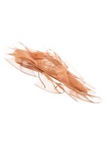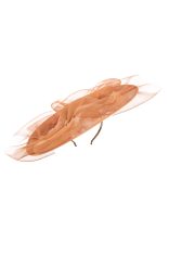This hat comes on a comfortable, ribbon wrapped double headband which we will match to your hair colour.