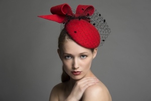 St Anton Pillbox Hat by Hostie Hats in red with black veil
